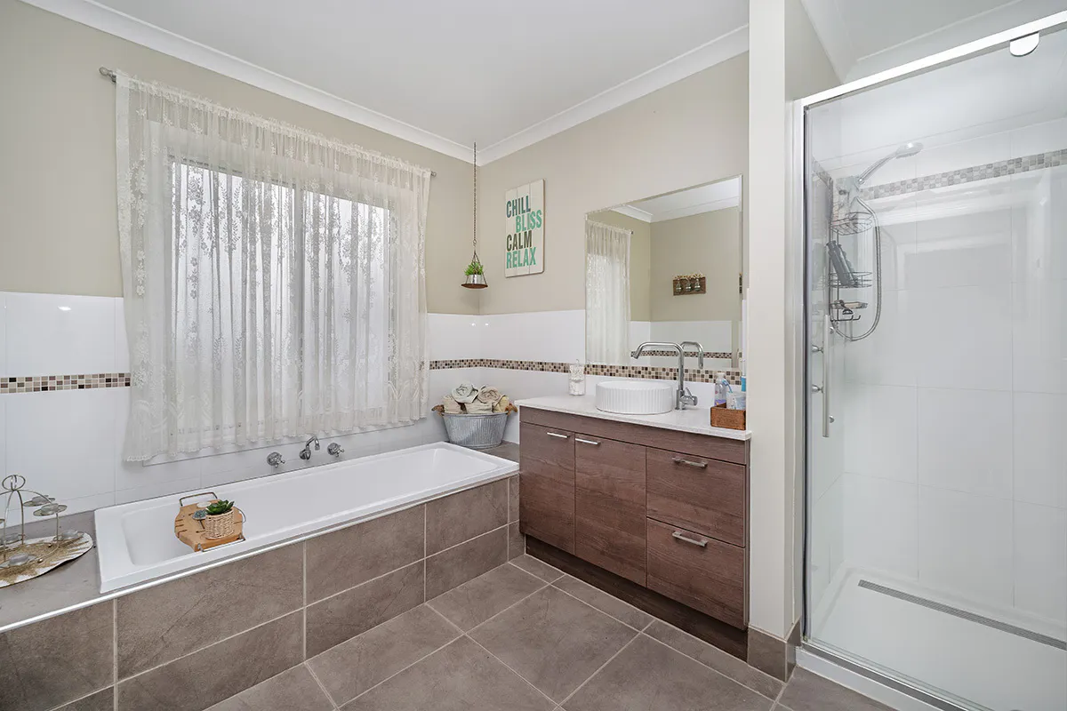 The master suite is spacious, complete with a walk-in robe and large ensuite featuring a spa bath, shower and separate toilet. The study offers excellent flexibility and can easily function as a fifth bedroom, second living area or an ideal work-from-home or business space, with the added benefit of direct external access providing a private entrance for clients or guests.