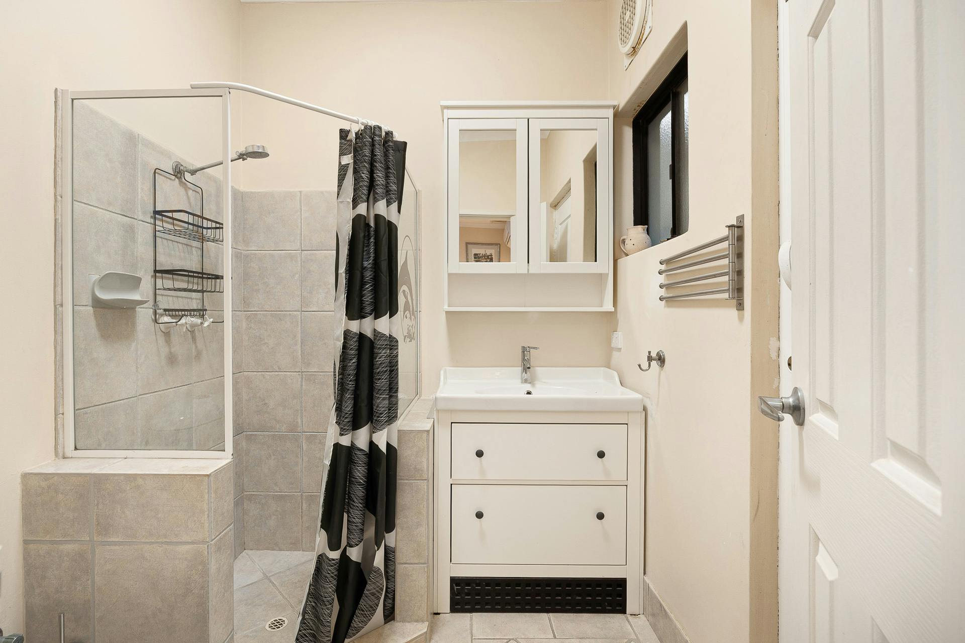 - Bedroom 4 or your private granny flat, with tiled flooring, a separate kitchenette with walk-in storage, and a dedicated entry for independent living, with an ensuite bathroom including a shower unit, vanity and WC