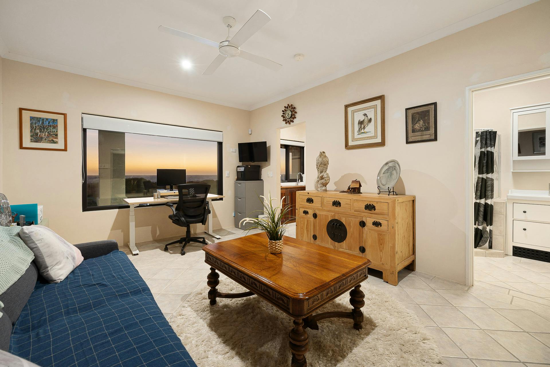 - Formal lounge and dining area to the front of the home, with sweeping windows to enjoy the incredible view, along with a cooling ceiling fan and effective reverse cycle air conditioning unit