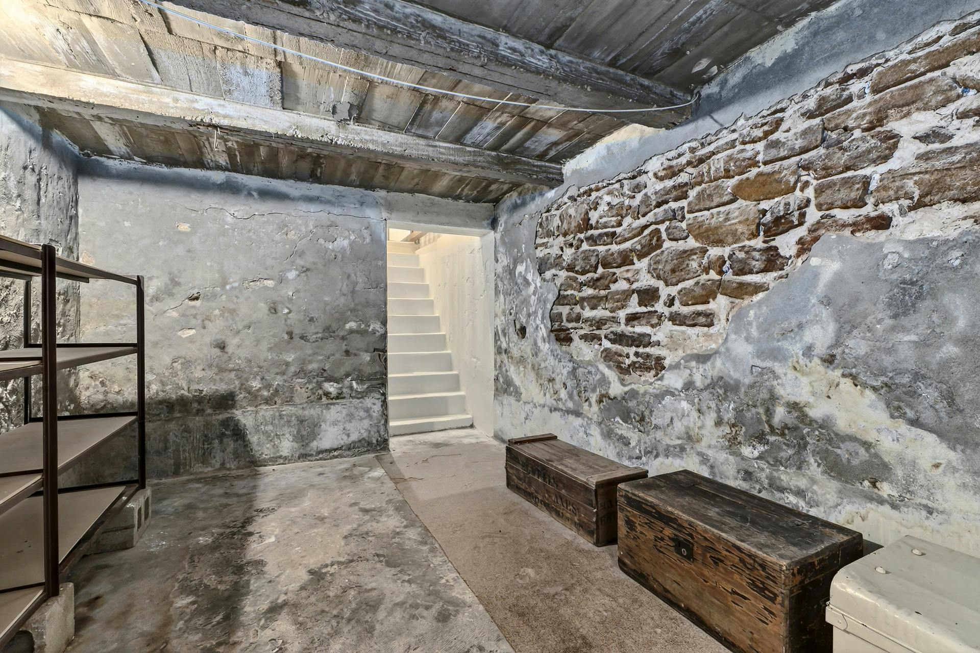 At the heart of the home sits a well-appointed kitchen featuring classic wooden cabinetry and a dishwasher. Nearby, the dedicated wine cellar-accessed via a staircase-reveals a generously proportioned space ideal for any wine enthusiast to store and display their collection.