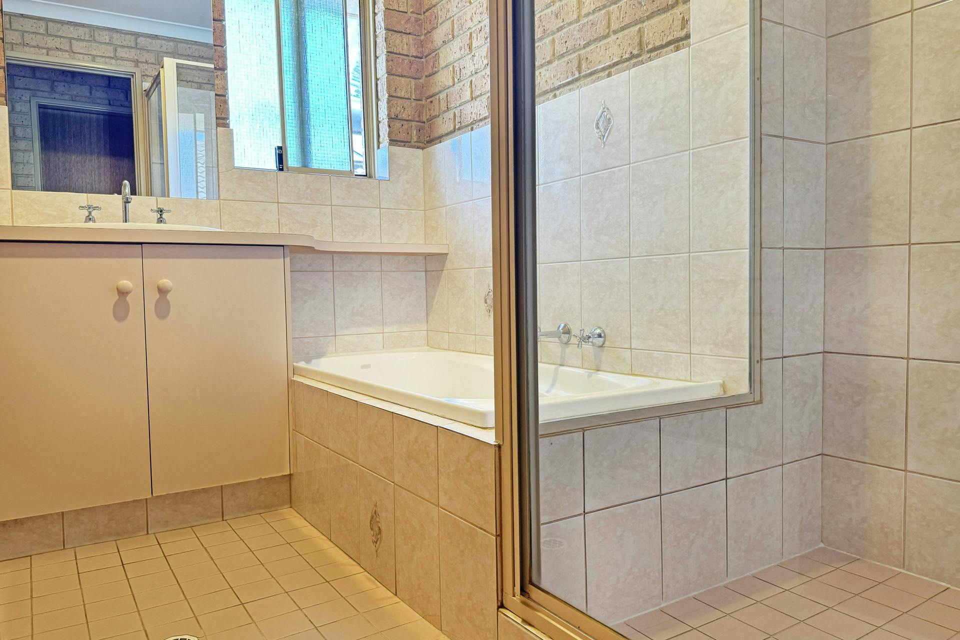 - Bedroom 1, carpeted, ceiling fan, walk-in robe, ensuite with shower recess, vanity and WC