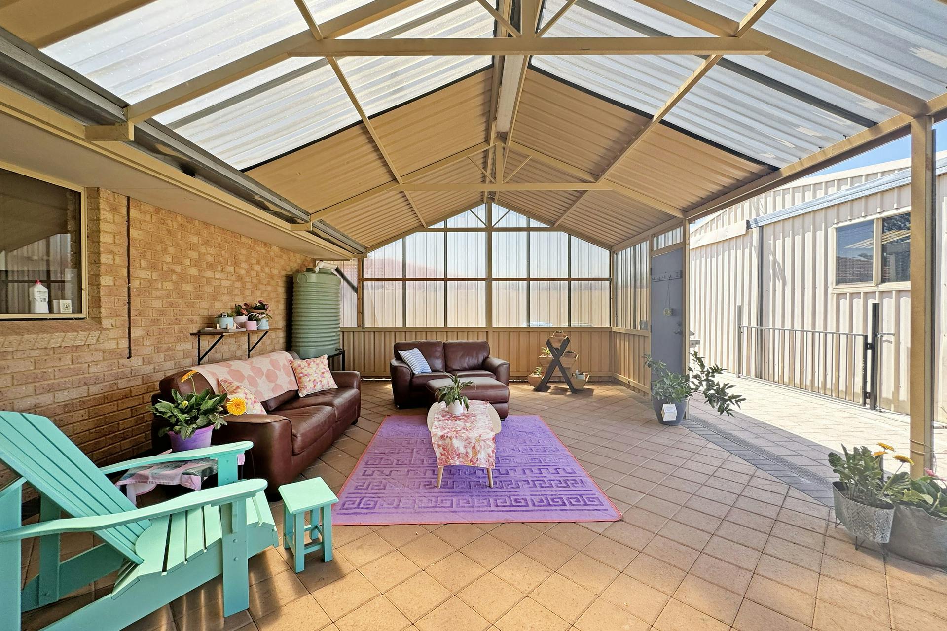 - Patio, gable roof, paved, partly enclosed, powered, rainwater tank