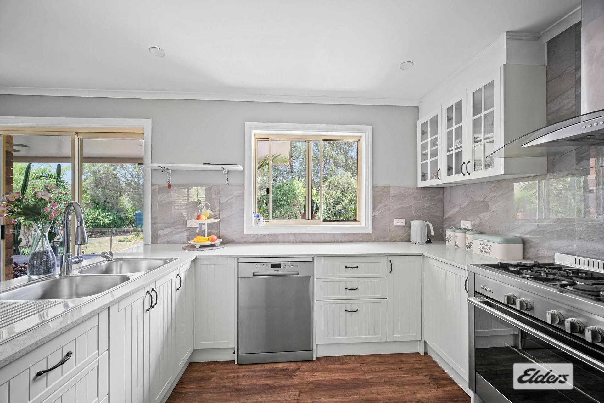 A stunning contemporary country kitchen with dishwasher, double sink, 900mm oven/stovetop, and exceptional storage options. Caesar stone bench tops and quality fixtures.