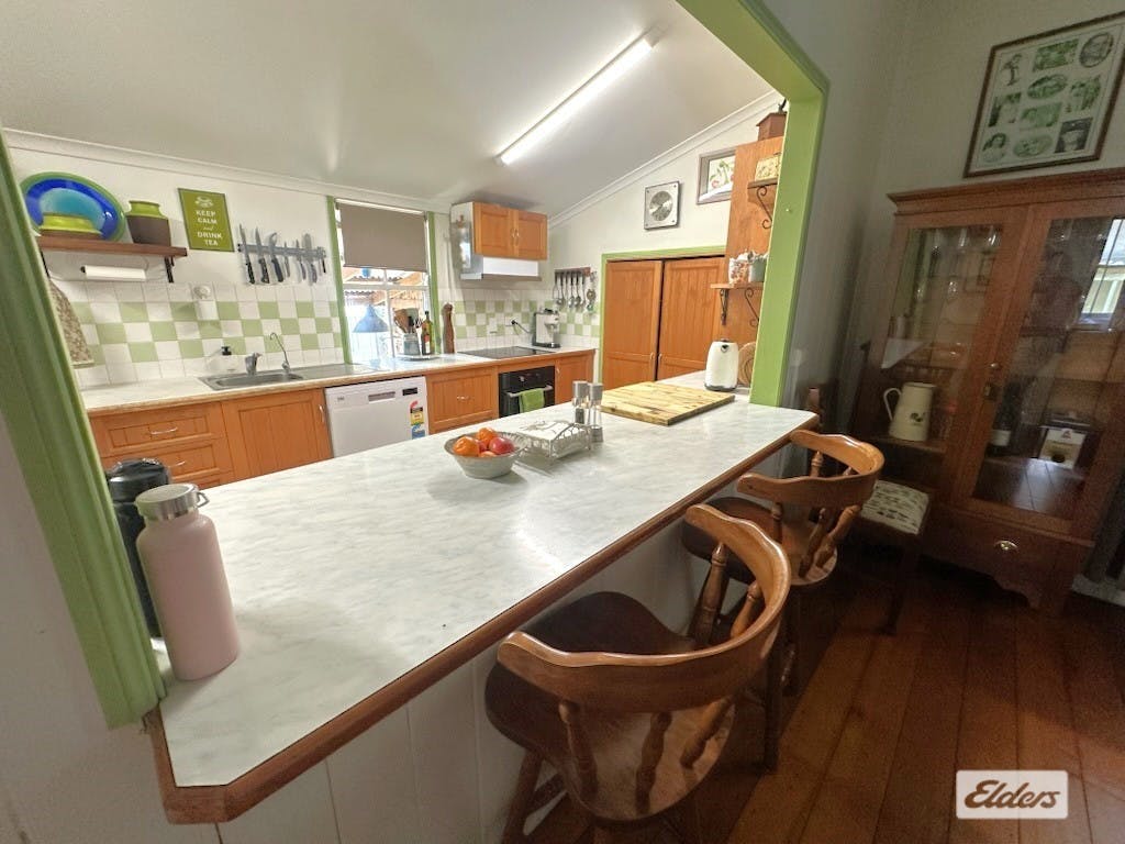 The country style kitchen is a chef's delight, boasting ample storage, abundant bench space, & a convenient breakfast bar. A slightly more modernised bathroom features a large shower, relaxing bath &toilet. Just a few steps down, you'll find a separate laundry area with a second toilet for added convenience.