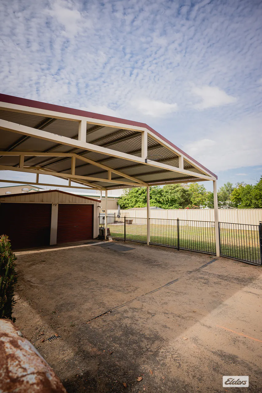 High-clearance carport with lockable two-bay shed - fully powered and concreted