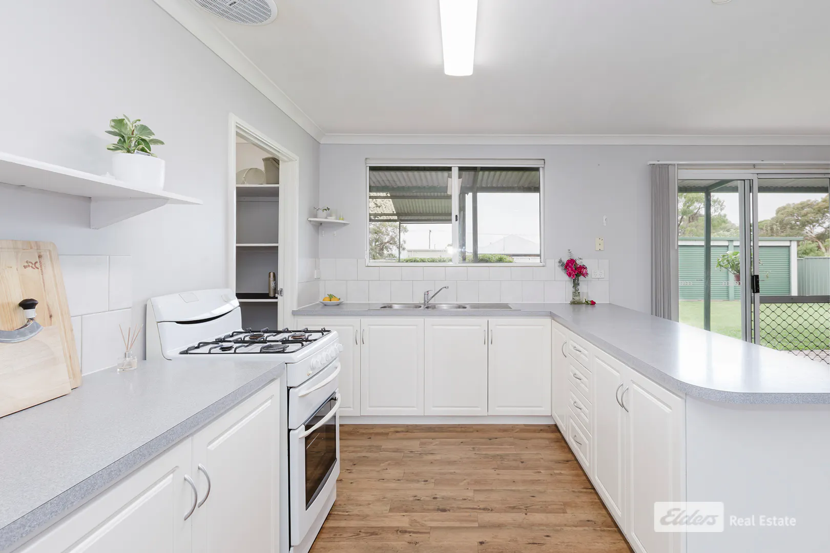 - White kitchen with walk-in pantry
