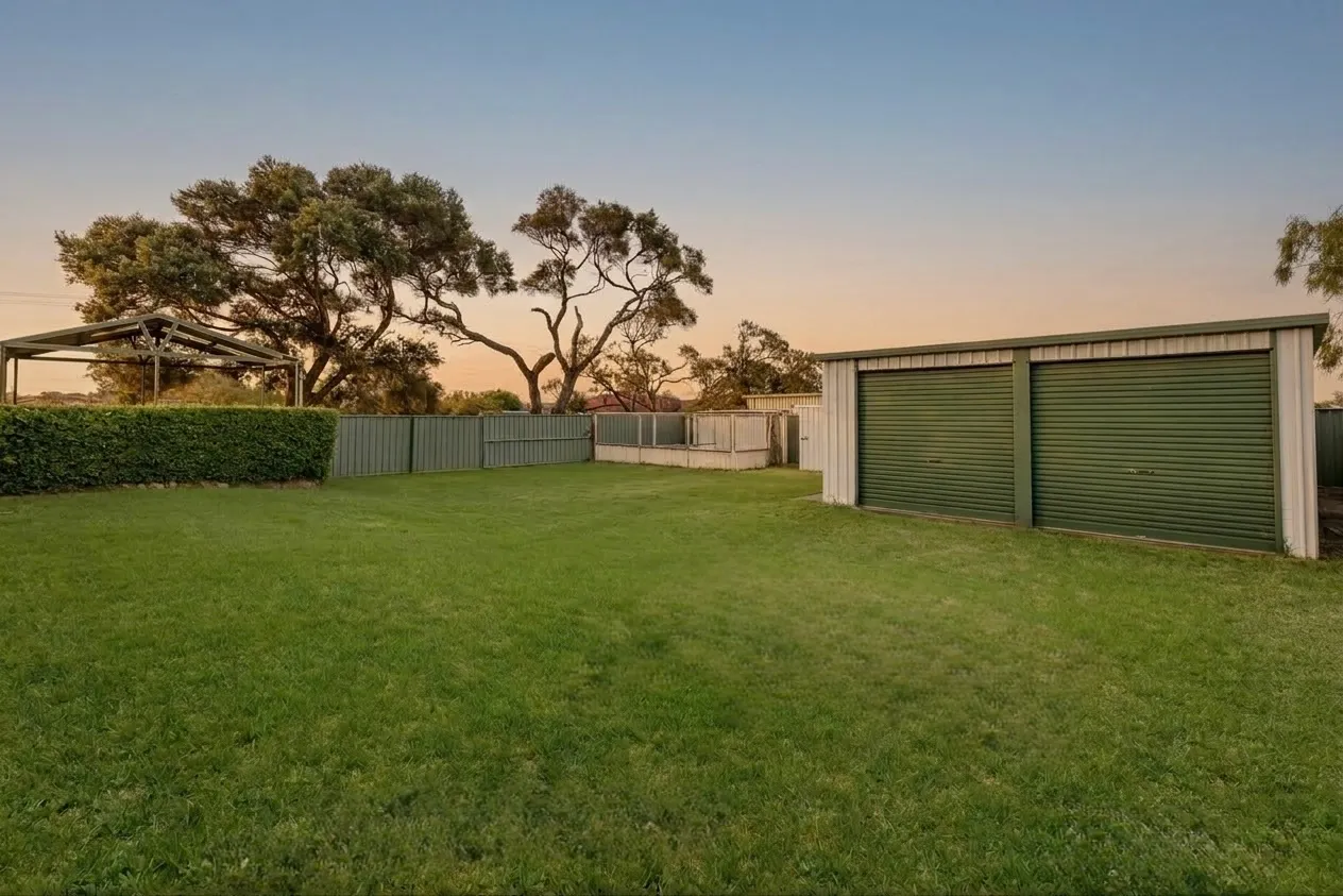 Outside, the lifestyle appeal continues. The enclosed backyard is mostly laid to lawn and includes a chook run, woodshed, toolshed and plenty of room for children and pets to enjoy. Side access leads through to the impressive 60sqm powered shed workshop, complete with two roller doors and a high clearance sliding door, a standout feature for buyers needing extra storage or workspace.