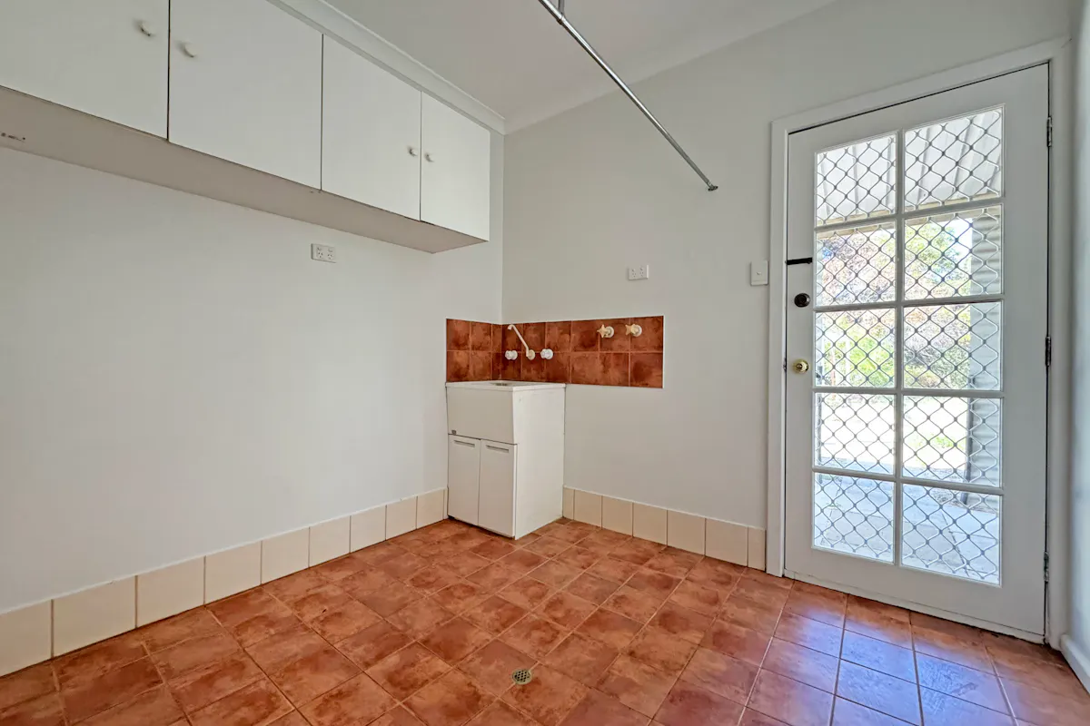 - Laundry, tiled, trough, overhead cupboards, door to rear of home