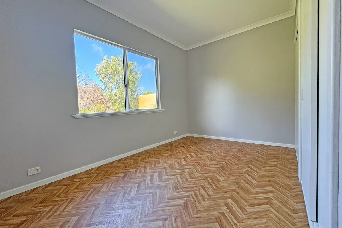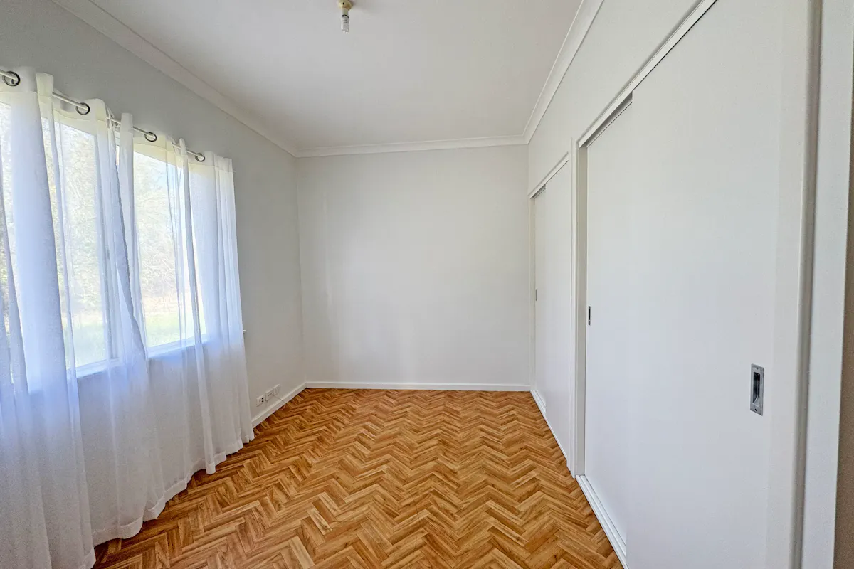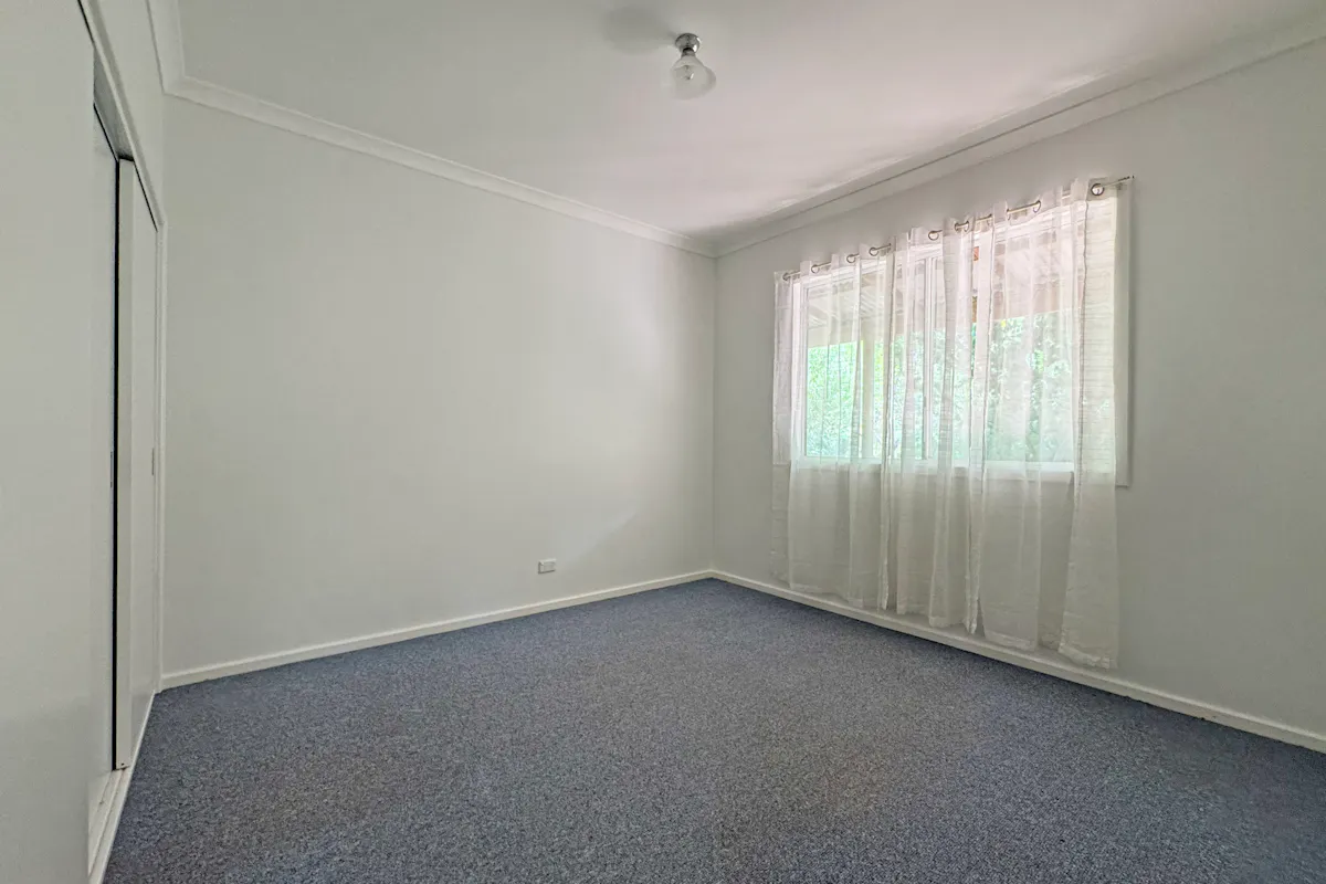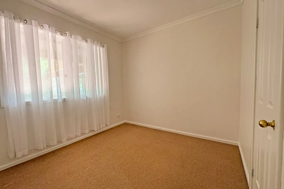 - Bedroom 2, carpeted, triple built-in sliding robe