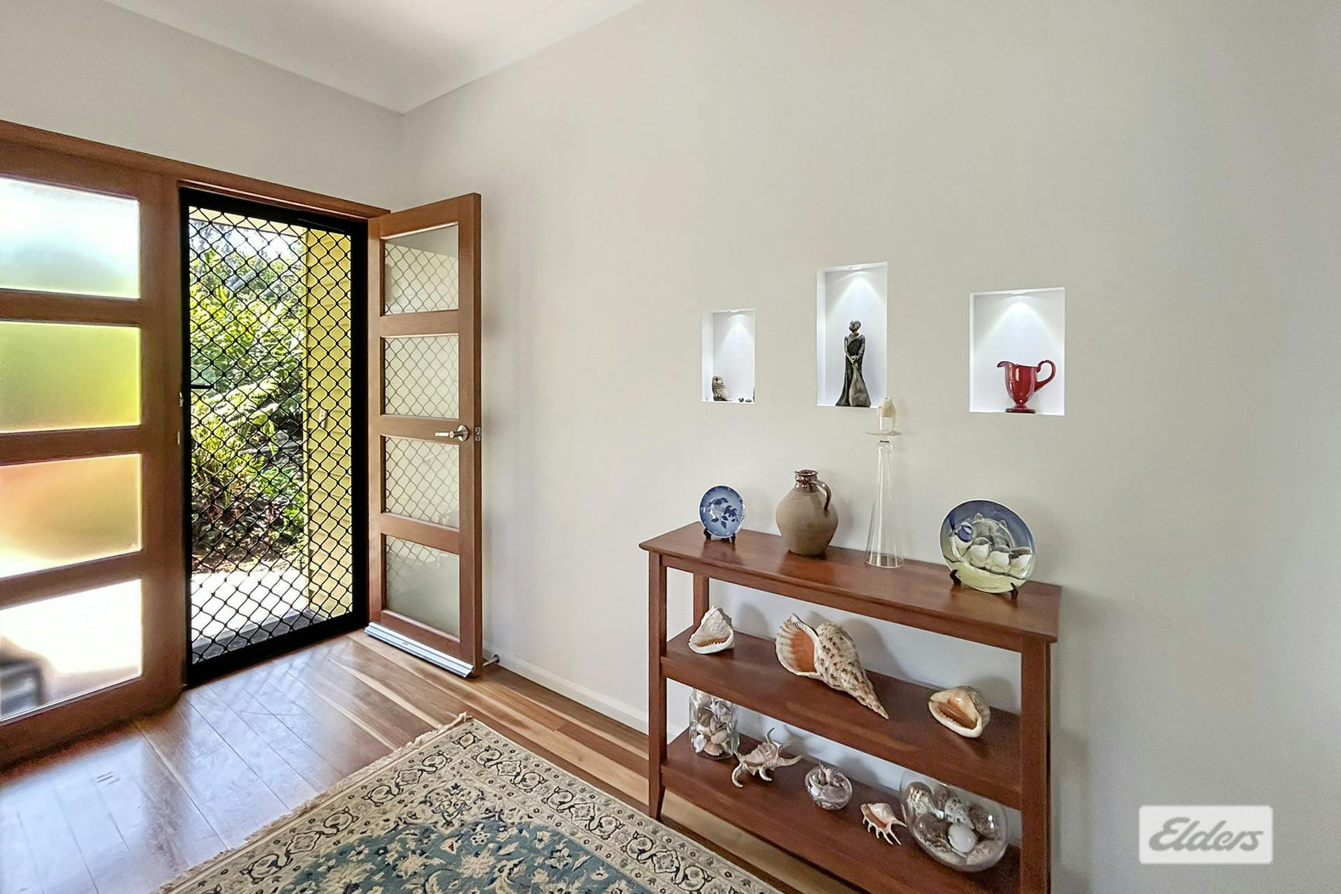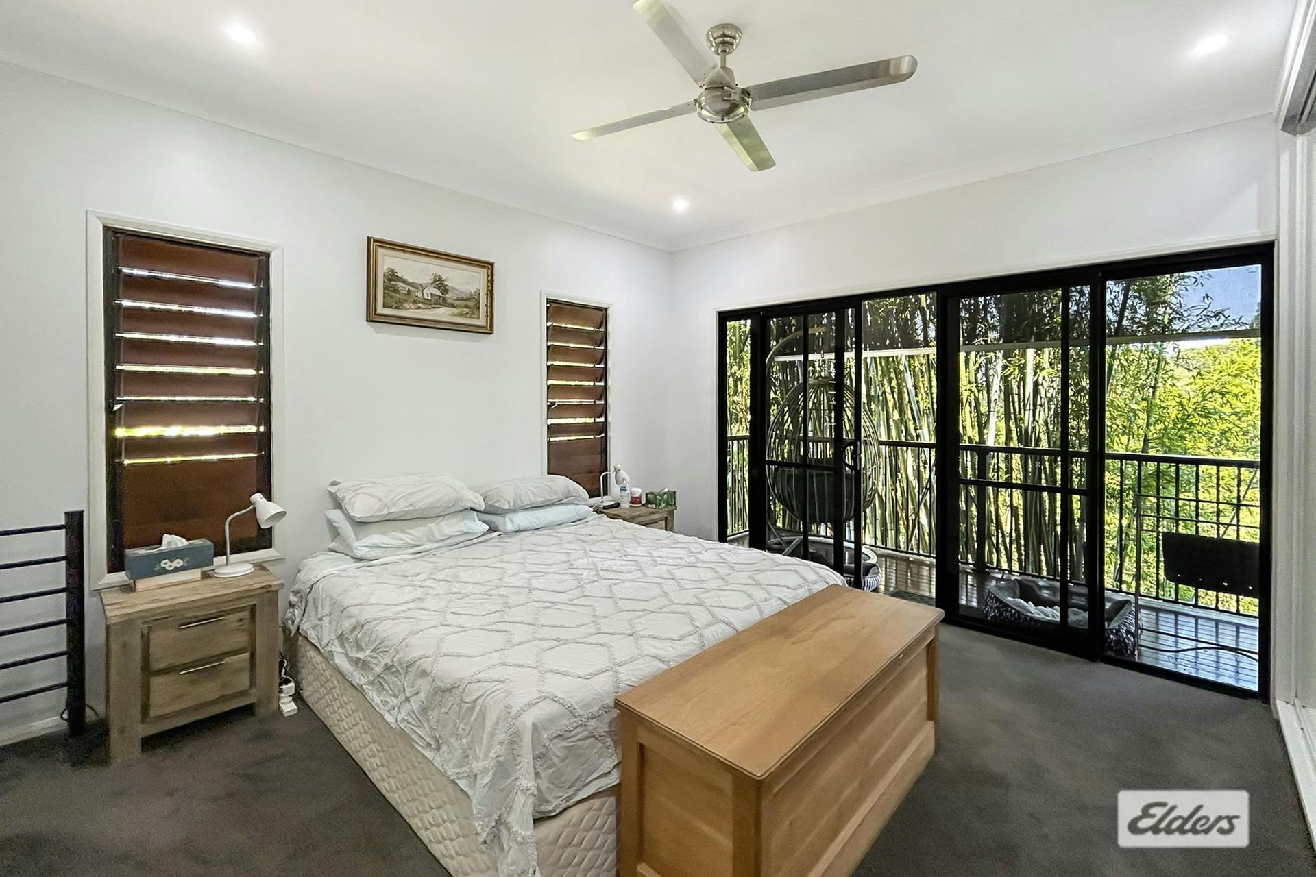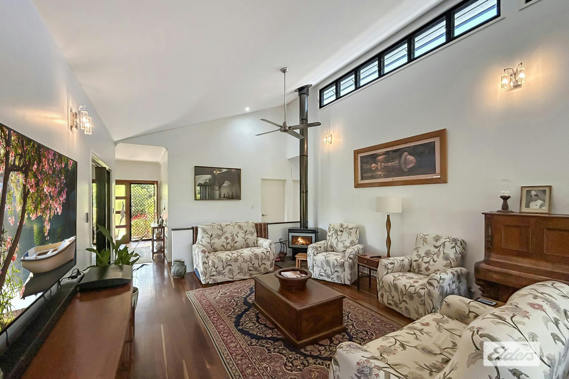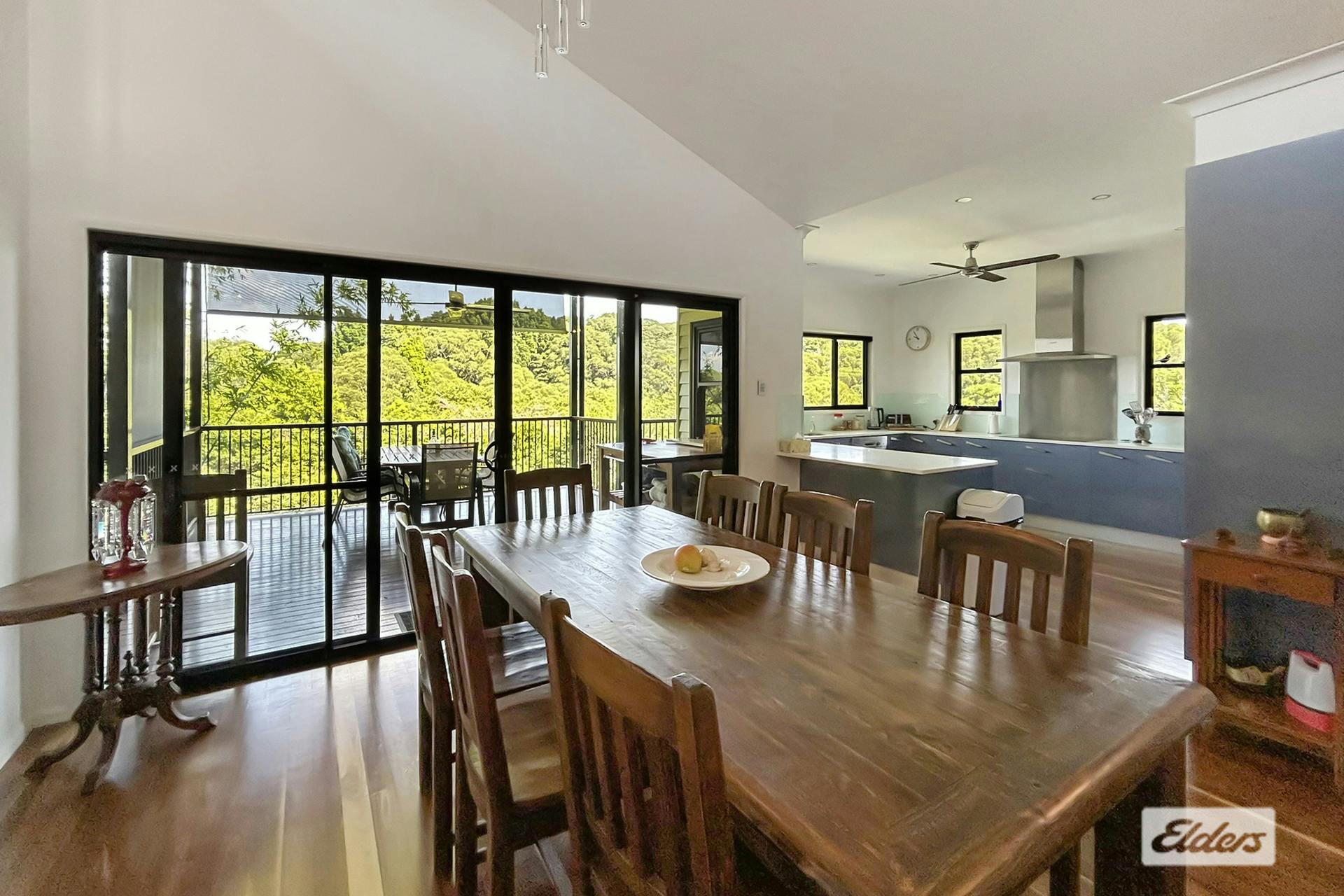 The home's clever layout connects seamlessly to the outdoors, with a spacious verandah wrapping around two sides, perfect for entertaining and relaxing. The grounds are a gardener's dream, a vibrant, productive food garden with a variety of tropical fruit trees, vegetables, and flowering plants. Every corner bursting with life, attracting birds and native wildlife. A spring fed creek with a rainforest buffer runs along the boundary, creating a private and peaceful wildlife corridor that adds to the property's serene atmosphere.