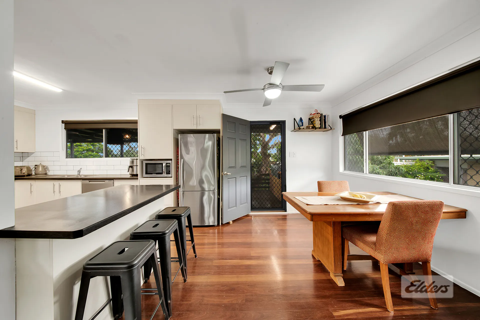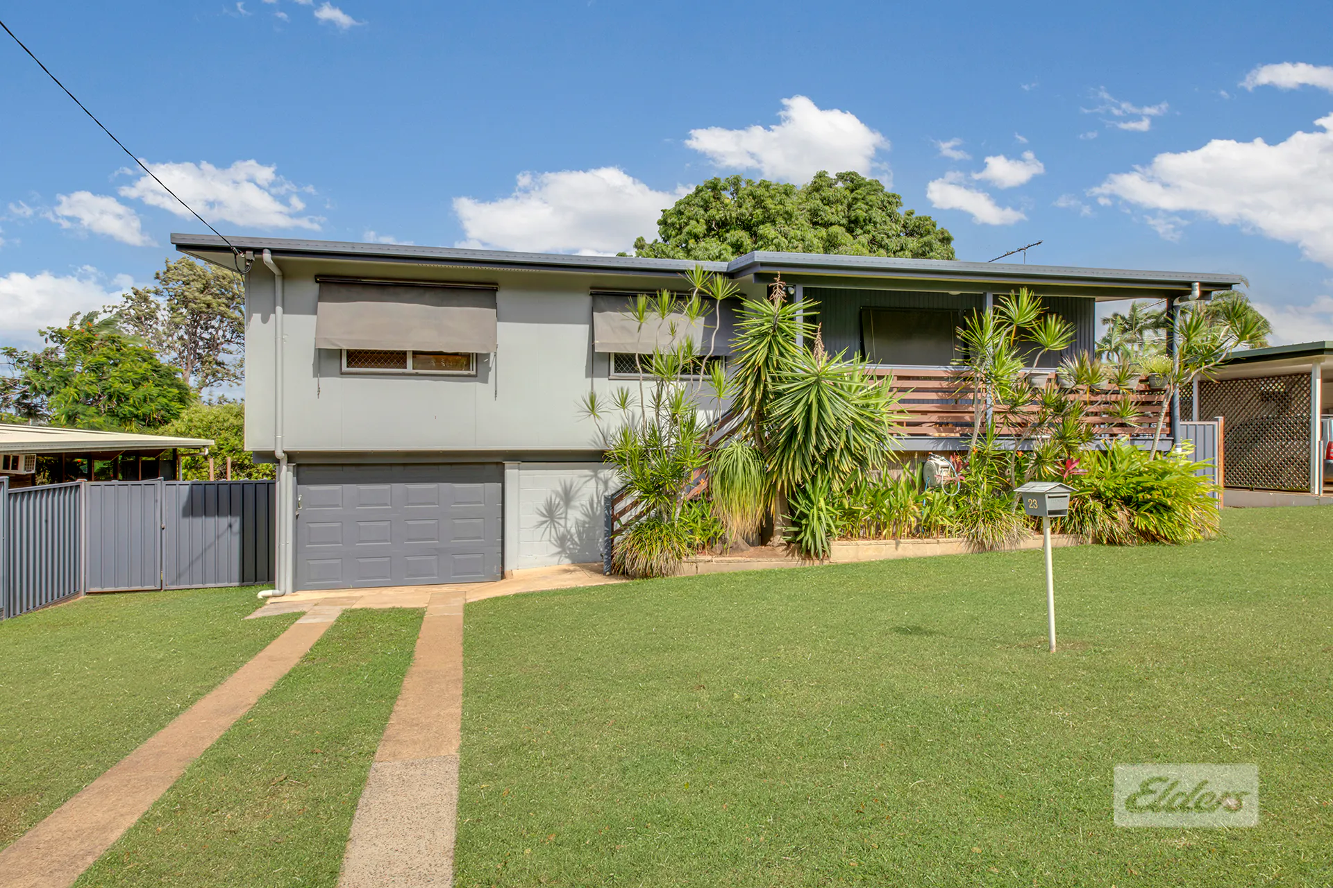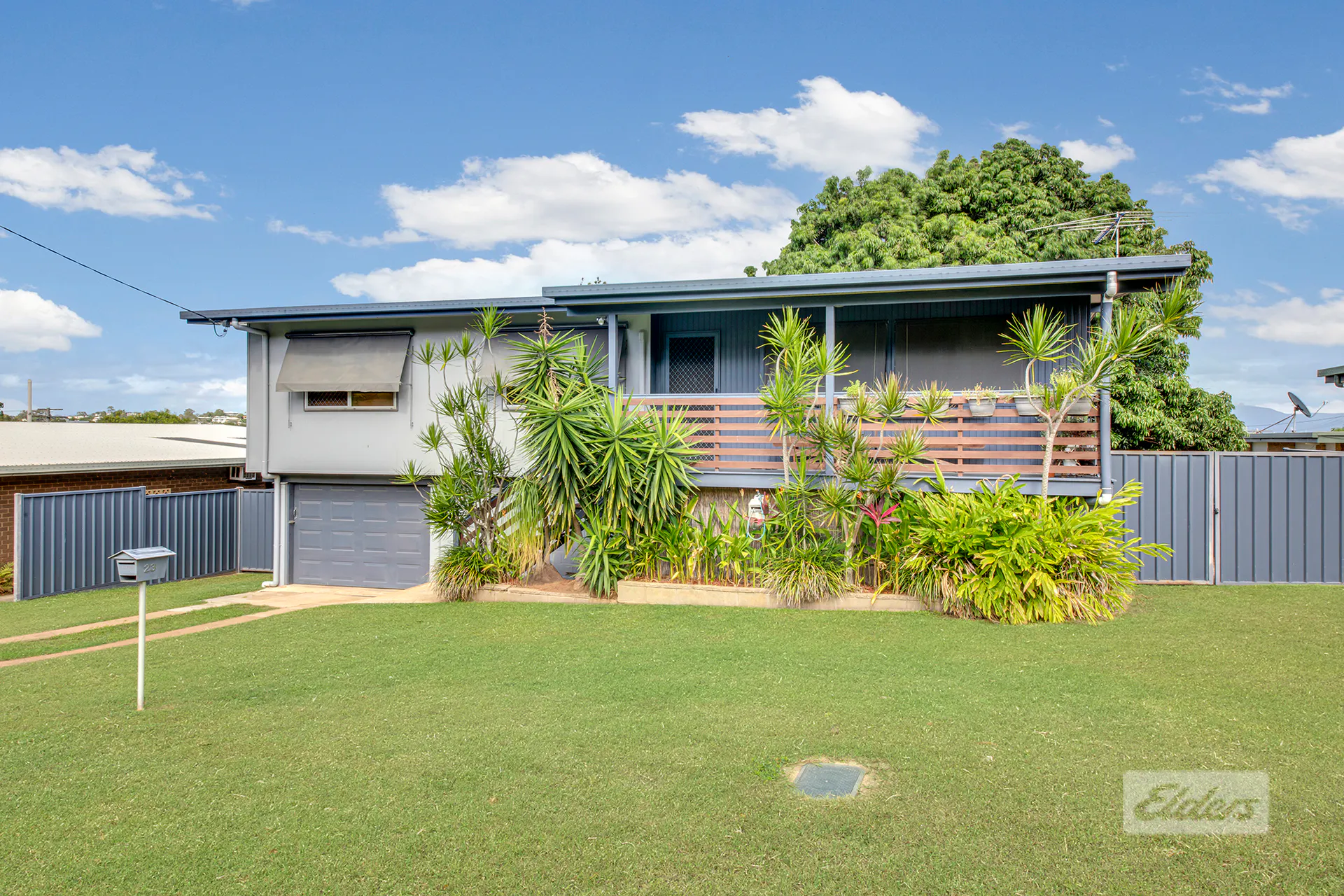 Located in West Gladstone, showcasing the sunset over Mount Larcom, this highset home combines a practical family layout with a leafy, private outlook.