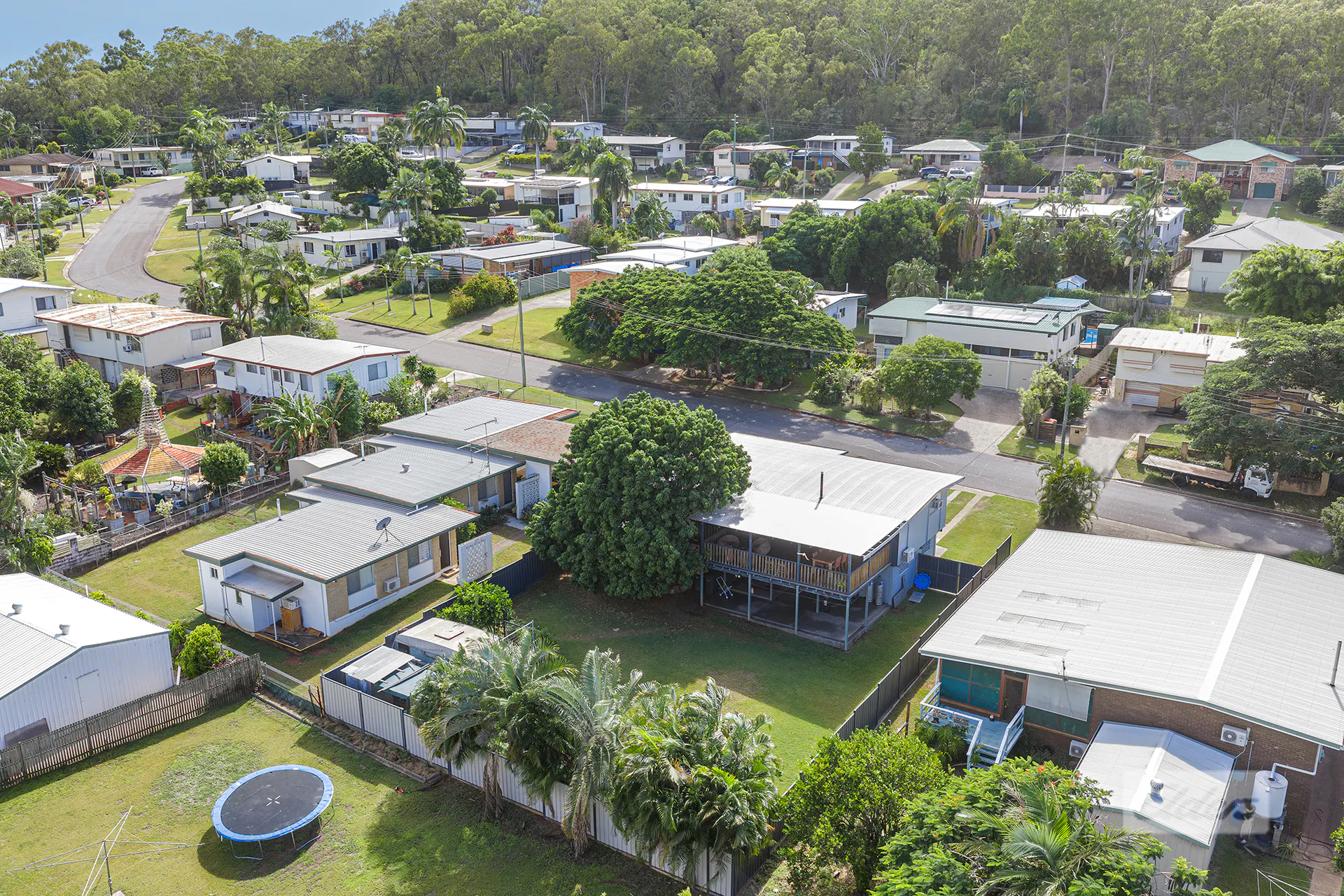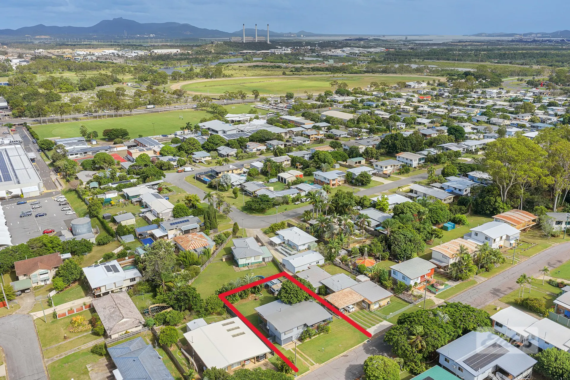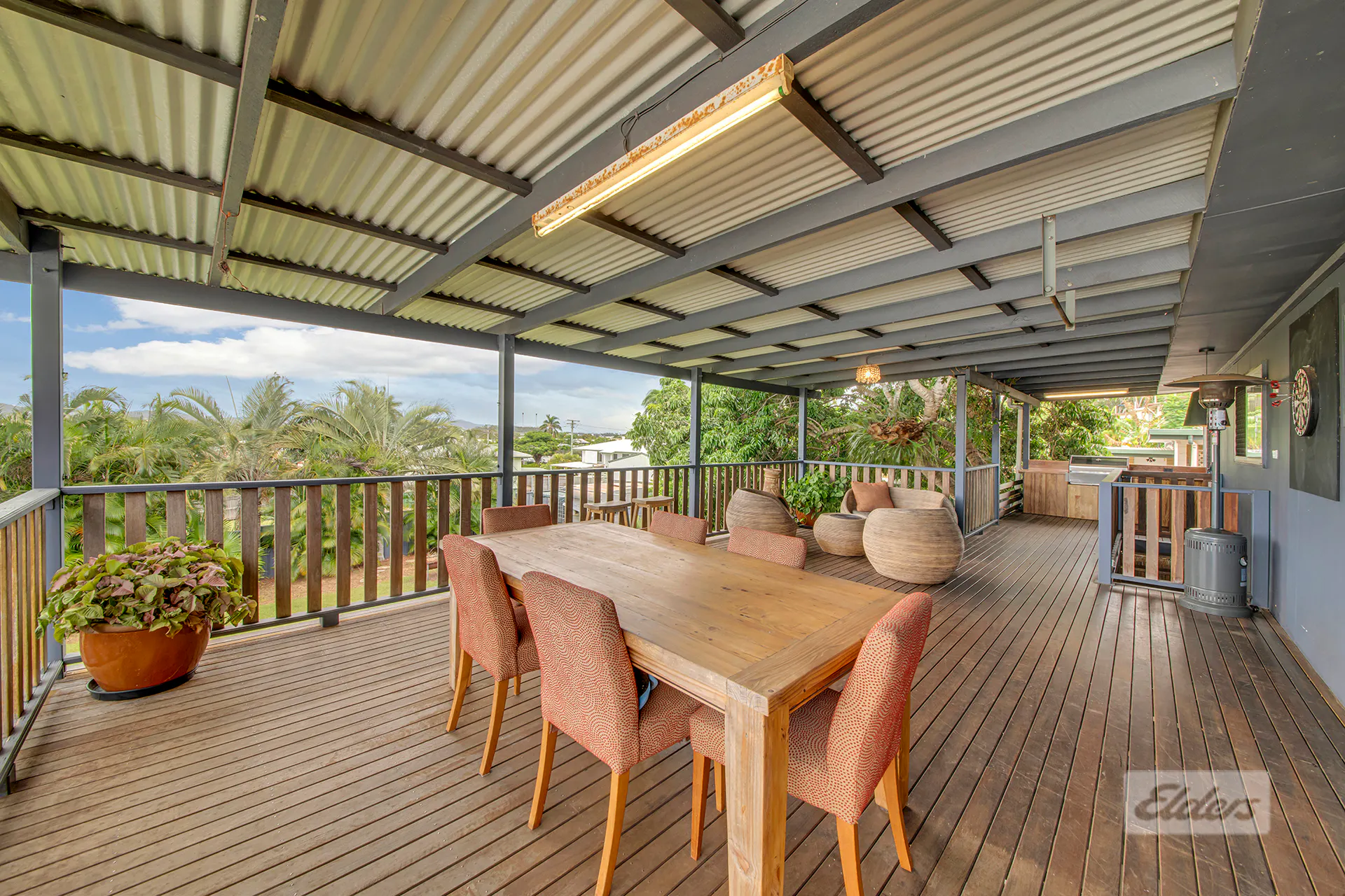 Located in West Gladstone, showcasing the sunset over Mount Larcom, this highset home combines a practical family layout with a leafy, private outlook.