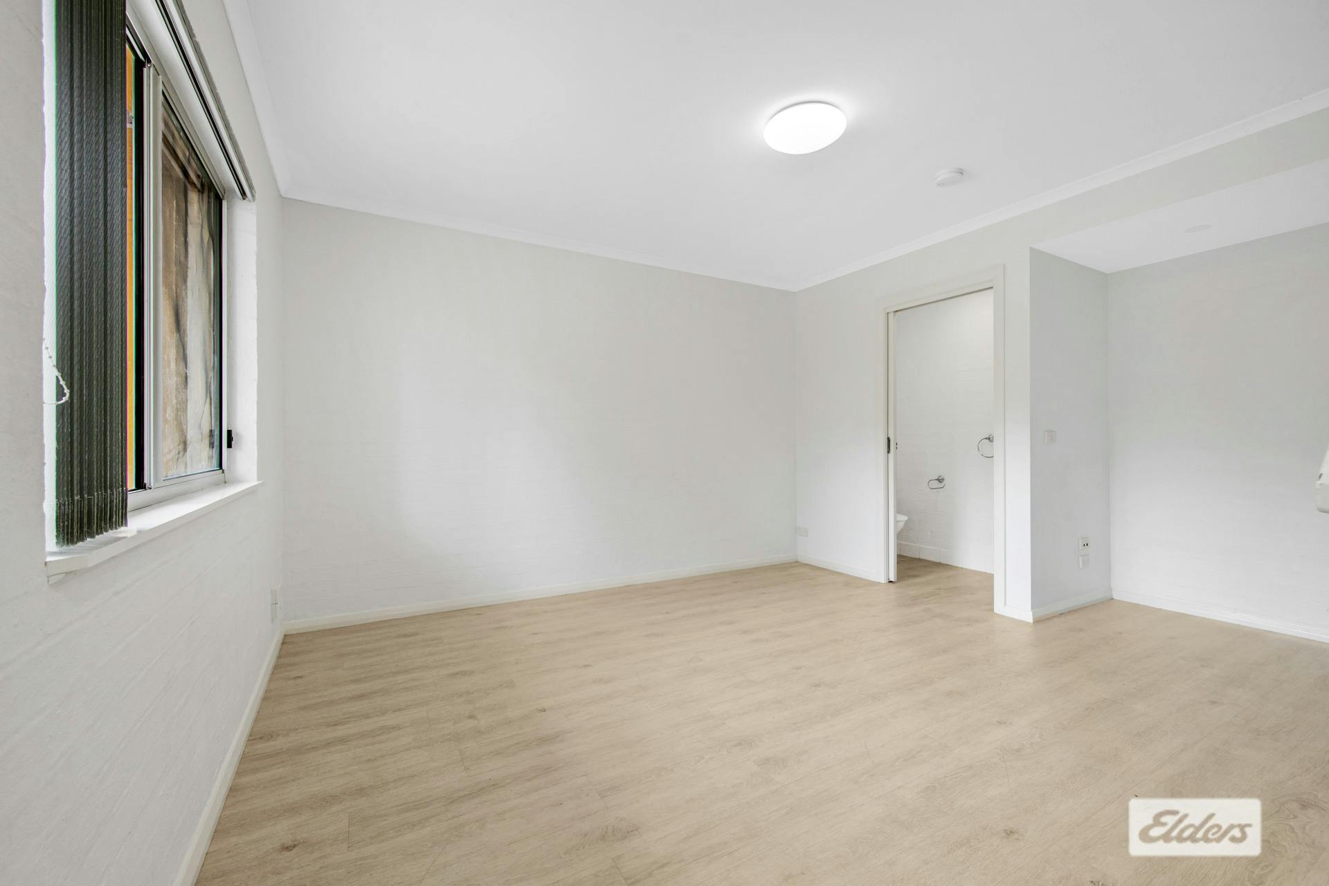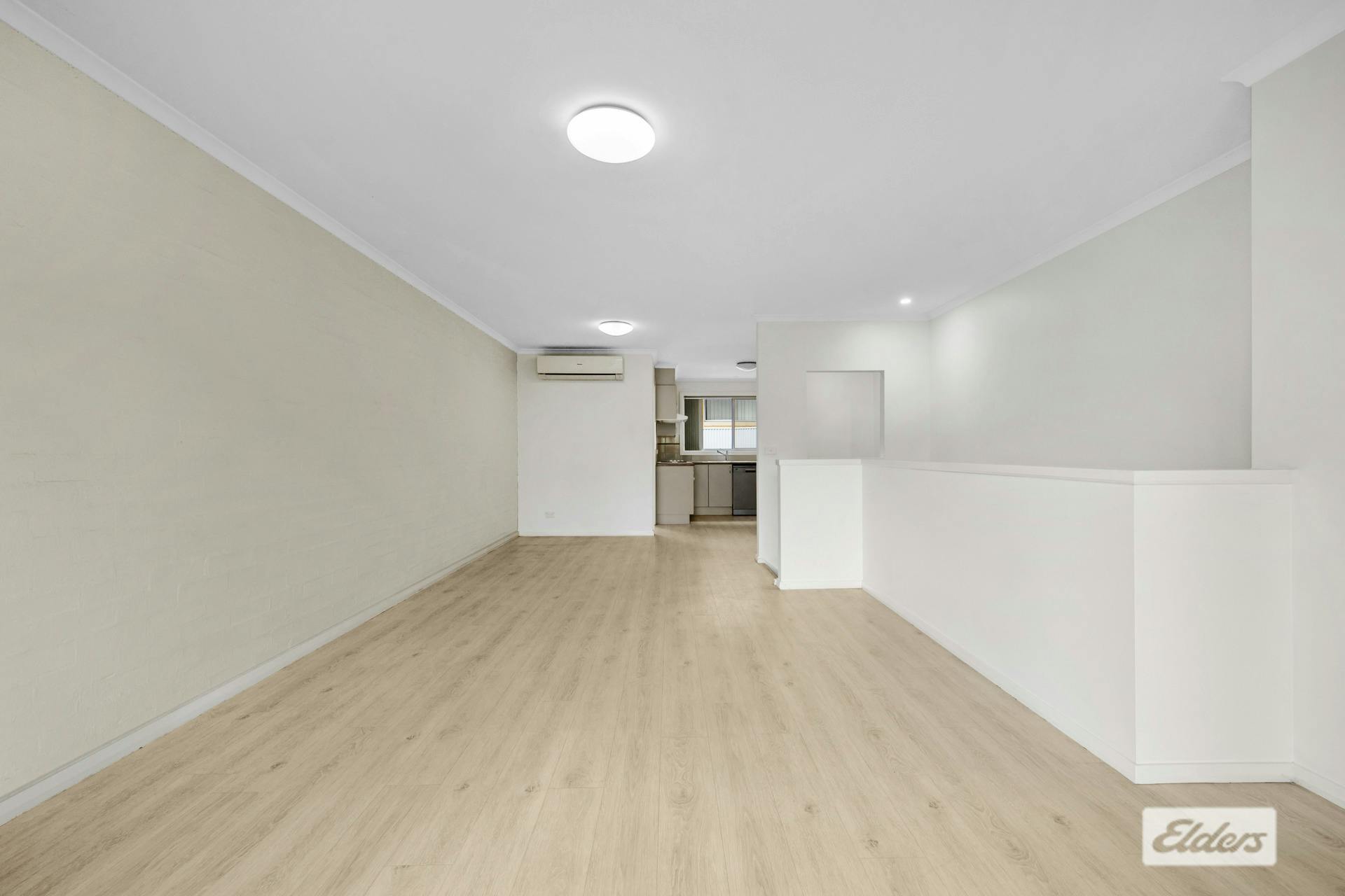 A sliding door separates the two bedrooms and main bathroom from the living space, creating a functional layout. Both bedrooms include built in wardrobes, with the main bedroom also featuring a ceiling fan. Reverse cycle air conditioning in the main living area ensures year round comfort.