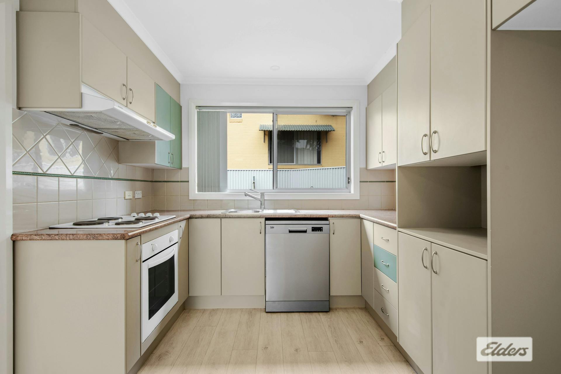 The kitchen offers electric cooking and sits adjacent to a separate laundry, which provides direct access to the fully fenced, low maintenance paved courtyard. This outdoor space is ideal for relaxed entertaining or a secure area for pets.