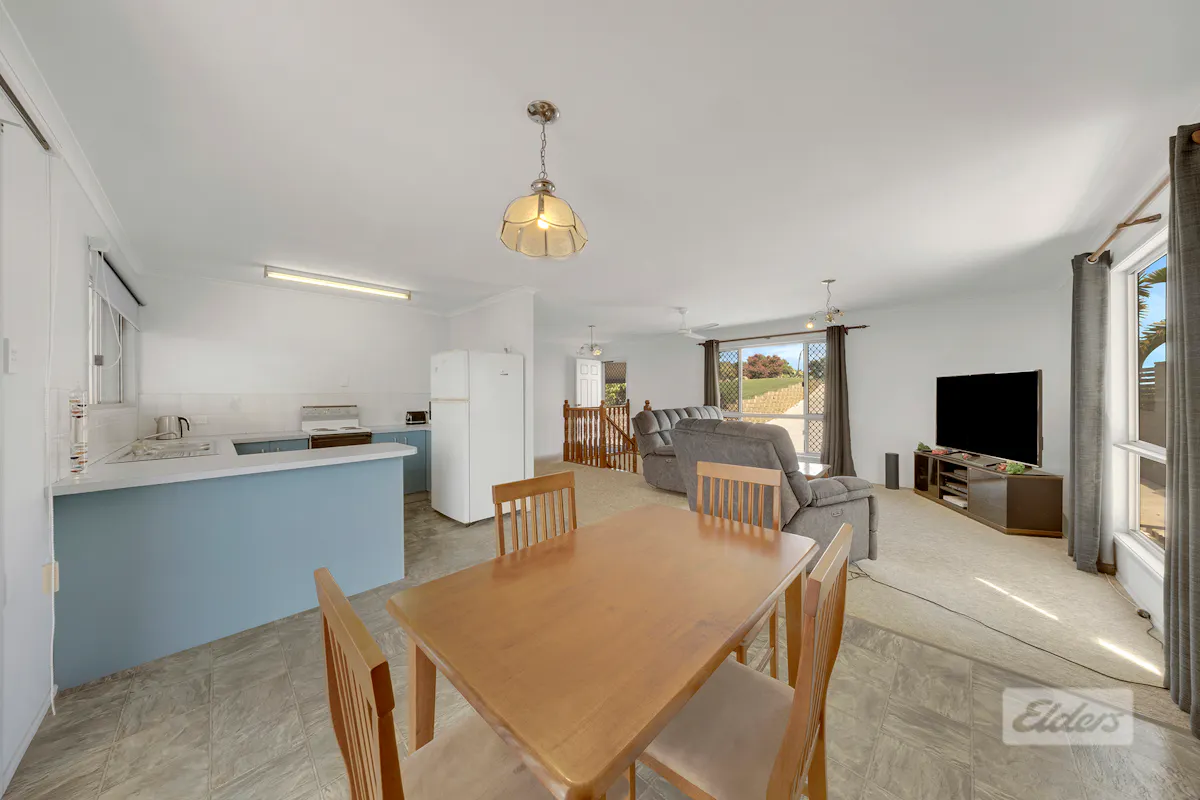 Elevated at one of the highest and most commanding positions in Kin Kora, 24 Coral Court is a residence that truly captures the essence of space, versatility and breathtaking outlooks. Set proudly on a generous 1,349m² allotment, this impressive home enjoys sweeping, uninterrupted views across the water, over Gladstone Airport and out toward the iconic silhouette of Mount Larcom, offering an ever changing panorama that few properties can match.From the moment you arrive, it is clear this home has been designed to take full advantage of its elevated setting. Upstairs, spacious and light filled living areas are enhanced by large windows and direct access to a substantial covered deck, creating a seamless flow between indoor comfort and outdoor living. This elevated entertaining space is a standout feature, perfect for relaxed mornings, sunset drinks or hosting family and friends while enjoying cooling breezes and the spectacular scenery below.