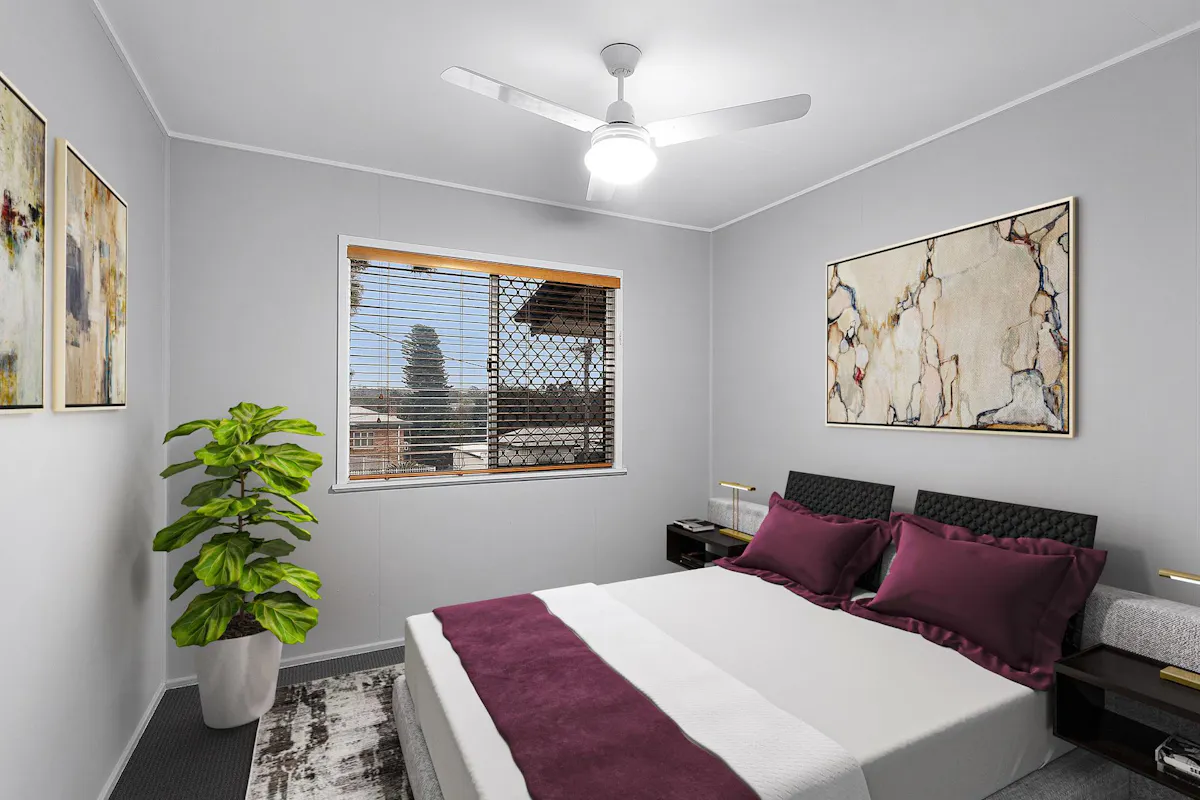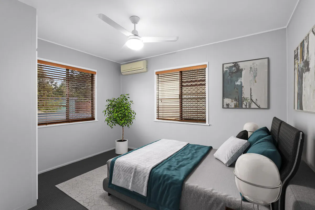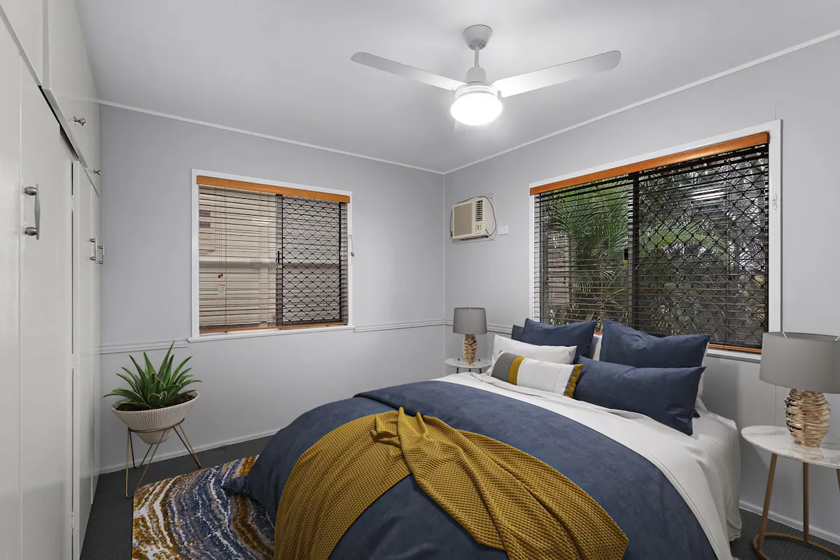 - 3 bedrooms, all with built-in wardrobes, 2 with air-conditioners, all with ceiling fans, security screens and venetian blinds