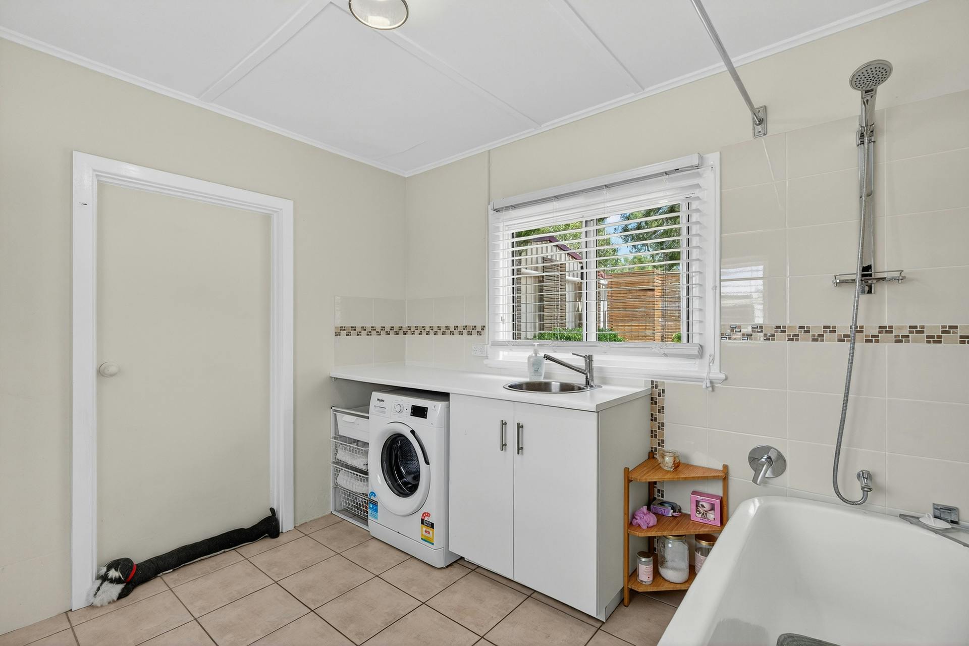 Adjacent to the casual living room is the laundry combined with a second bathroom, complete with claw-foot bath, shower and a separate W.C.