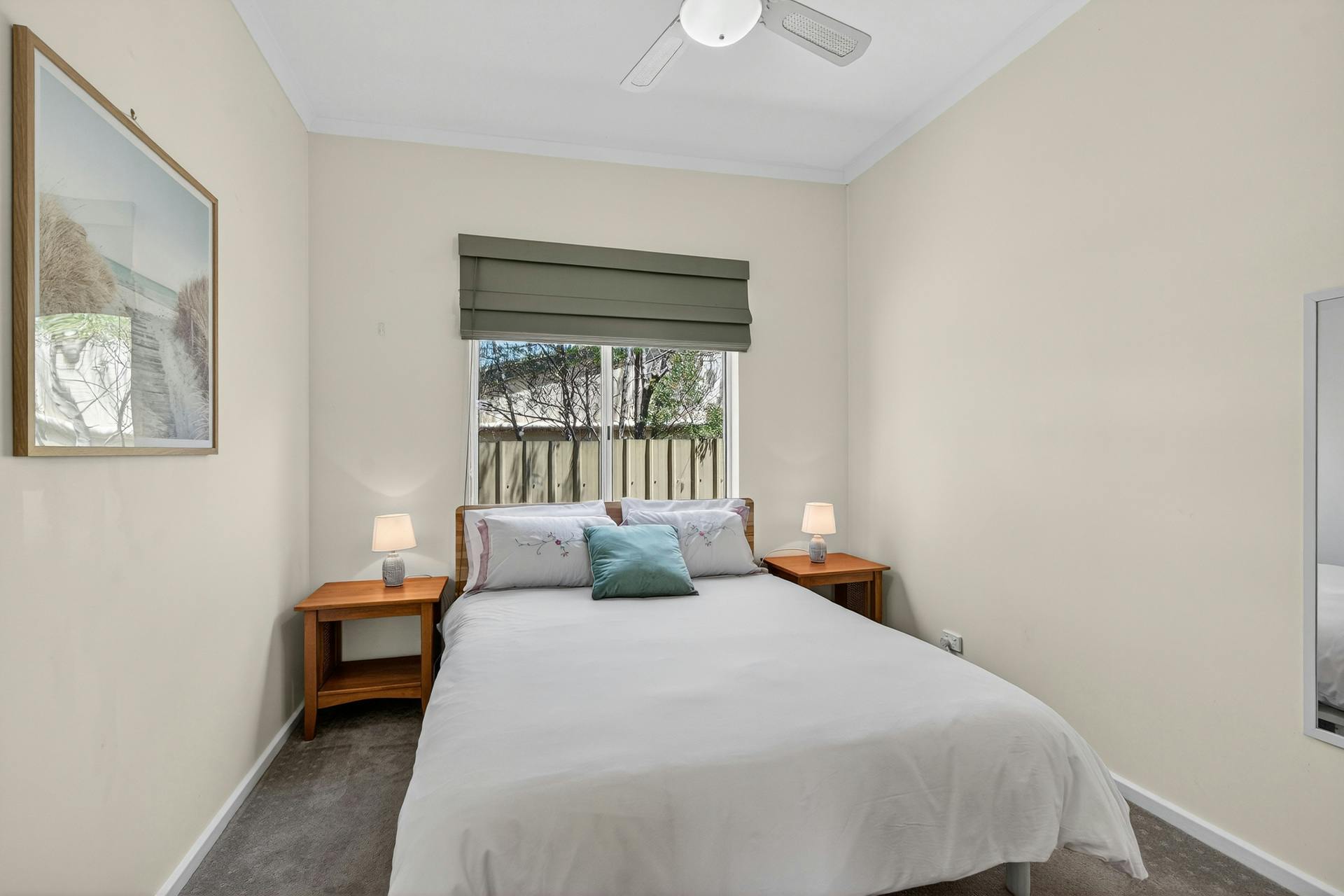 A wide double-door entry hallway welcomes you inside, leading to the master bedroom complete with built-in robe and reverse-cycle air conditioning. The stylish, contemporary bathroom is finished in crisp white and stone tones and includes a shower, vanity and W.C. The second bedroom also features a built-in robe and split-system air conditioning.