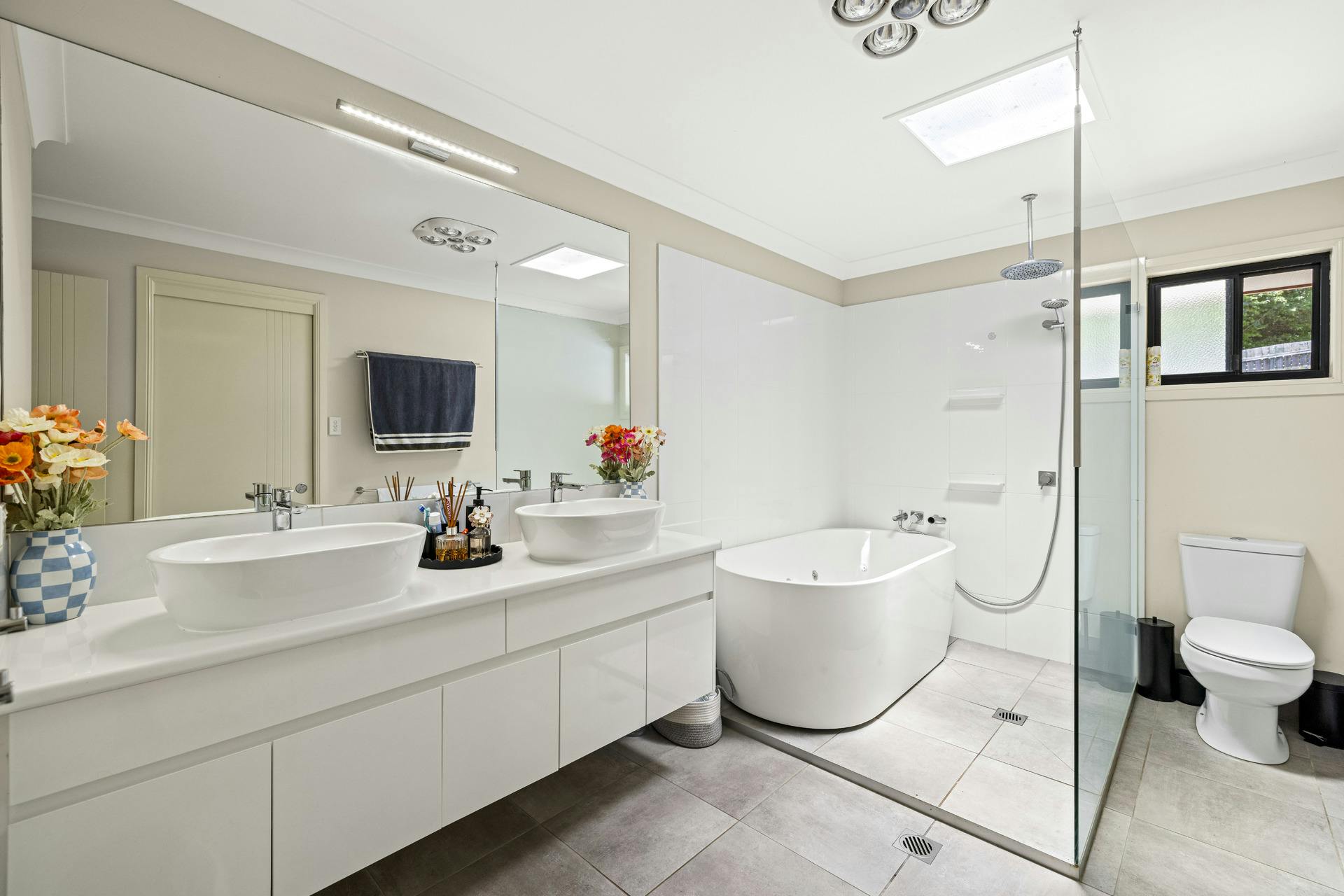 - Bathroom functions as a two way ensuite, accessible from the main bedroom and hallway.