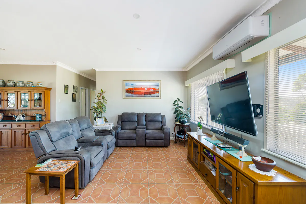 Set privately at the end of a long driveway, this impressive Ross Squire designed family home offers space, comfort and lifestyle on a picturesque 17.96-acre property with sweeping country views.Boasting a generous floorplan, the home features 4 large bedrooms, 2 bathrooms, soaring high ceilings throughout, and thoughtful modern conveniences including phone sockets in every bedroom, ceiling fans to all bedrooms, fixed wireless NBN, solar panels, and a solar hot water system.