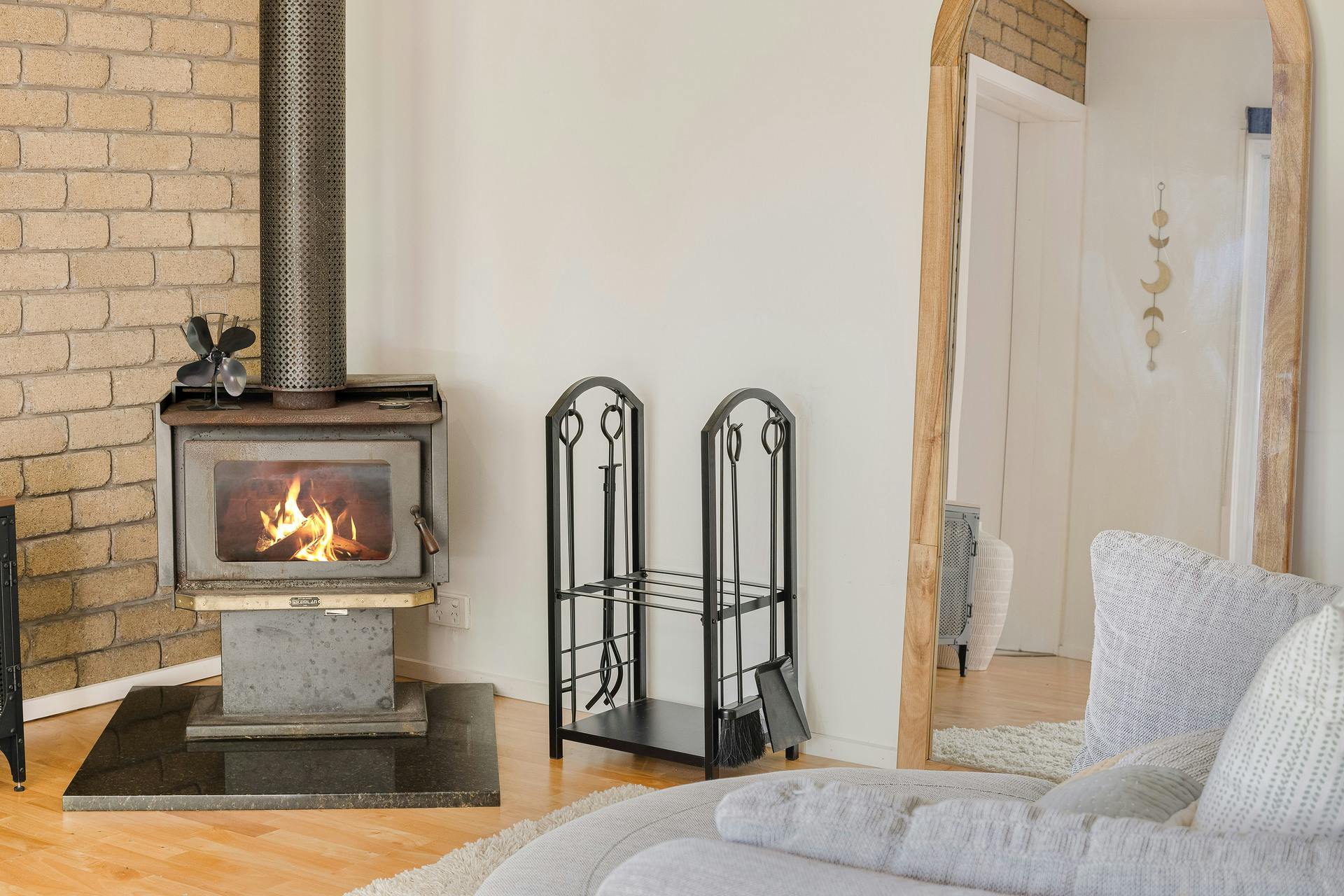 • Split-level in design, there are two large living areas including the lounge with combustion heater and deck access, and open plan living/kitchen with vaulting skillion ceiling