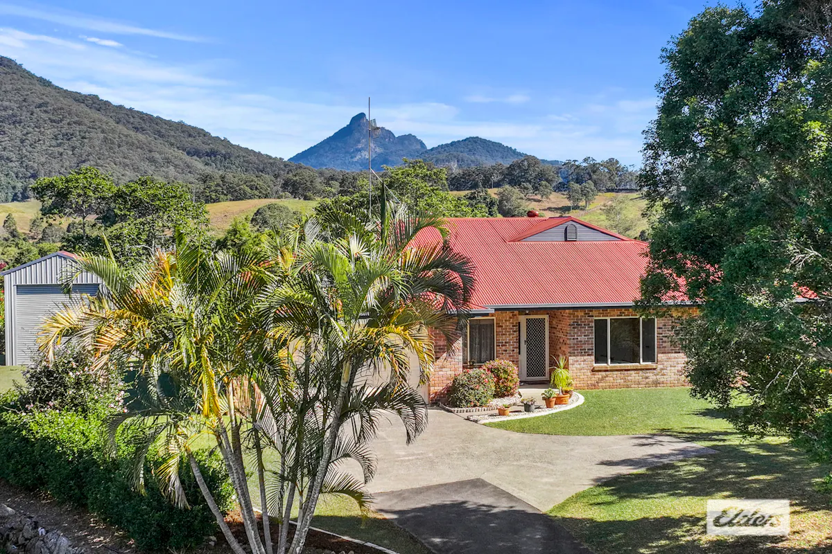 Take in outstanding views from this elevated, Northern position just 5 minutes from the Northern Rivers town of Murwillumbah! This 1 acre property boasts a high quality, generous 3 bedroom brick home with features such as 9 foot ceilings, 2 large living rooms, 3 generous bedrooms, 2 bathrooms, a study, an additional store room, and a 7m x 7m lock up garage.With lots of storage and deep veranda's to entertain from, this home is in excellent condition!