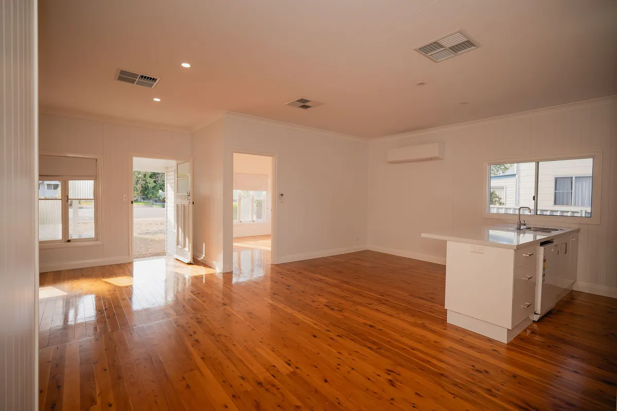 A renovated character home rich in charm and modern comfort, set on an expansive 1026m2 allotment in a peaceful Feather Street location.This beautifully maintained residence offers space, style, and a relaxed lifestyle ideal for families, couples, or those seeking room to move. Featuring three generous bedrooms and two well-appointed bathrooms, the home blends timeless character with everyday functionality.Inside, polished timber floors stretch throughout, complemented by soft, calming neutral tones that create a warm, inviting ambiance. Sunlight filters naturally through the windows, highlighting the home's character and creating a sense of airy spaciousness. The open-plan living area is versatile, easily accommodating relaxed family gatherings, entertaining friends, or a quiet home office space. At the heart of the home, the kitchen blends classic charm with modern functionality, featuring sleek appliances, generous cabinetry, and a thoughtfully designed layout that effortlessly connects to the dining area and outdoor spaces-perfect for enjoying meals or hosting celebrations.