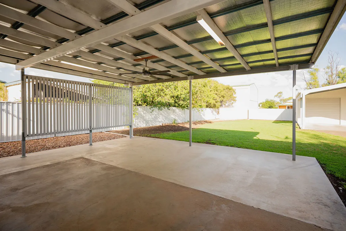 The rear of the home opens to a covered downstairs entertaining area, complete with concrete flooring, ceiling fan, and privacy screening-ideal for year-round enjoyment. The landscaped backyard includes a watering system and offers plenty of space to personalise, garden, or simply relax. Fully fenced for privacy, the property also features electric gate access to the backyard and an impressive powered two-bay shed and garage.