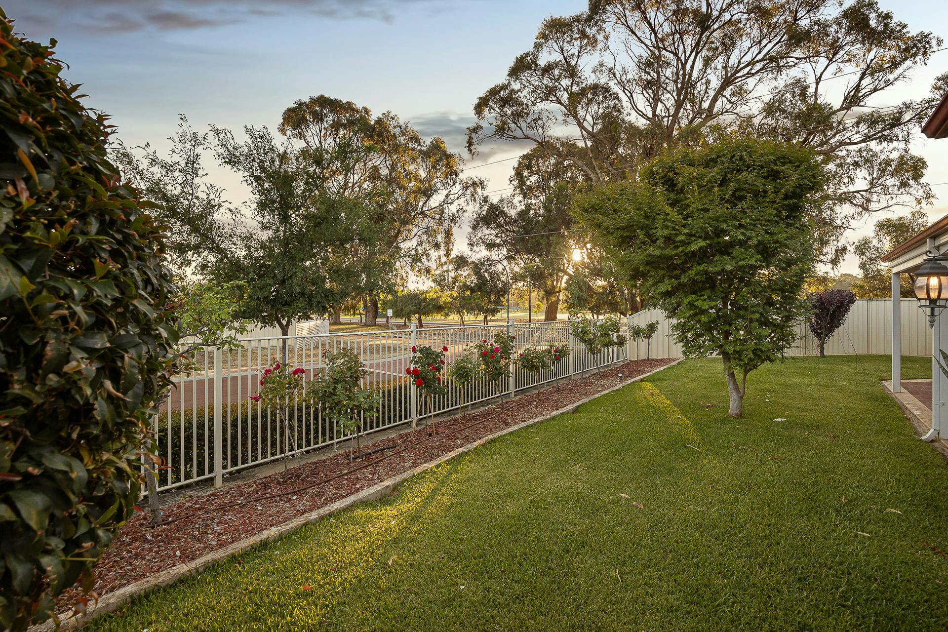 - Fully fenced front garden, with lush green lawn and a border of colourful and established roses