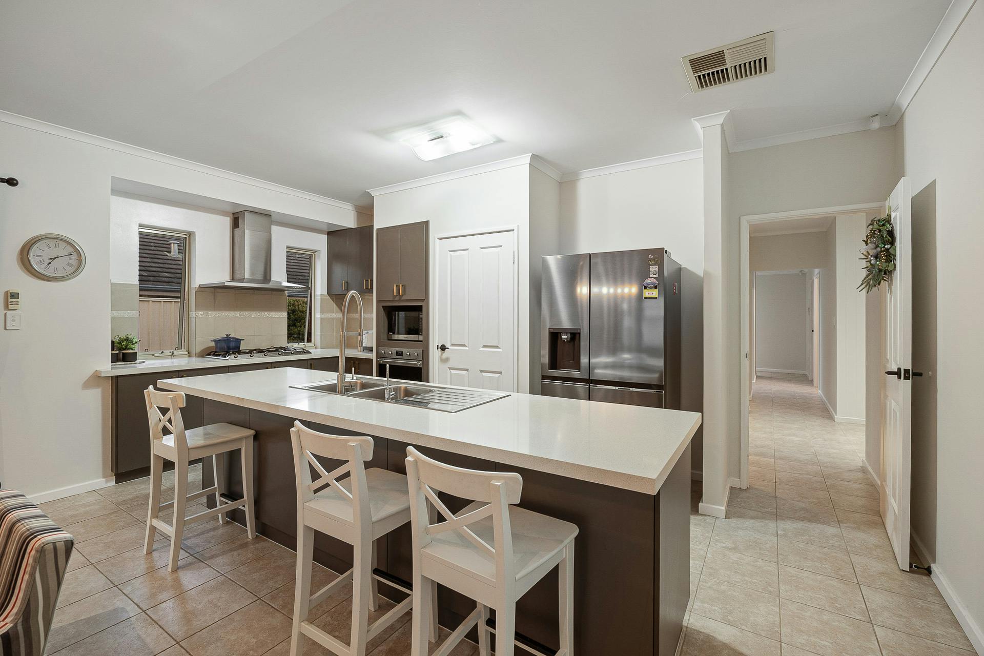 - Centrally placed kitchen with a freestanding island for casual meals, with an in-built dual wall oven, gas cooktop and rangehood, plus ample cabinetry and a full height pantry