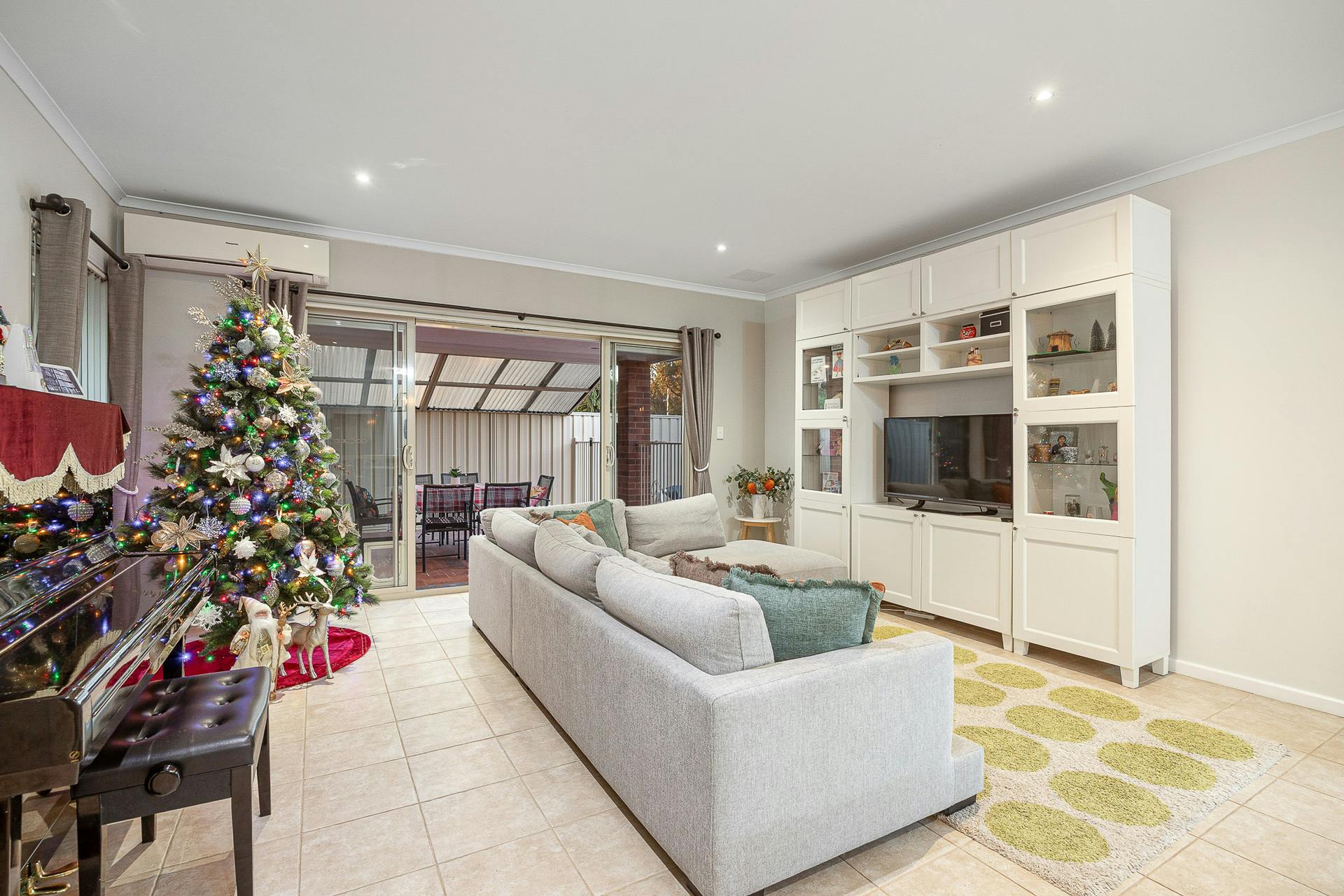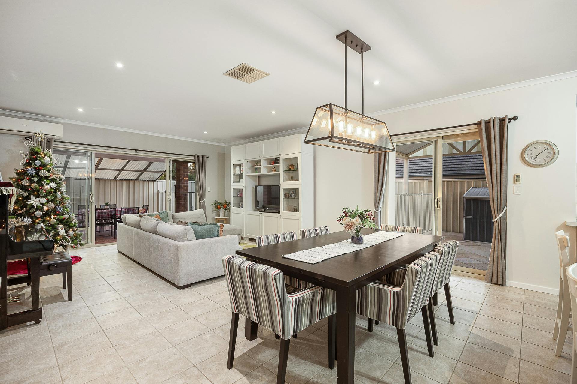 - Open plan living and dining area, with an efficient split system air conditioning unit, both downlighting and a feature pendant, and a choice of access to the backyard and patio