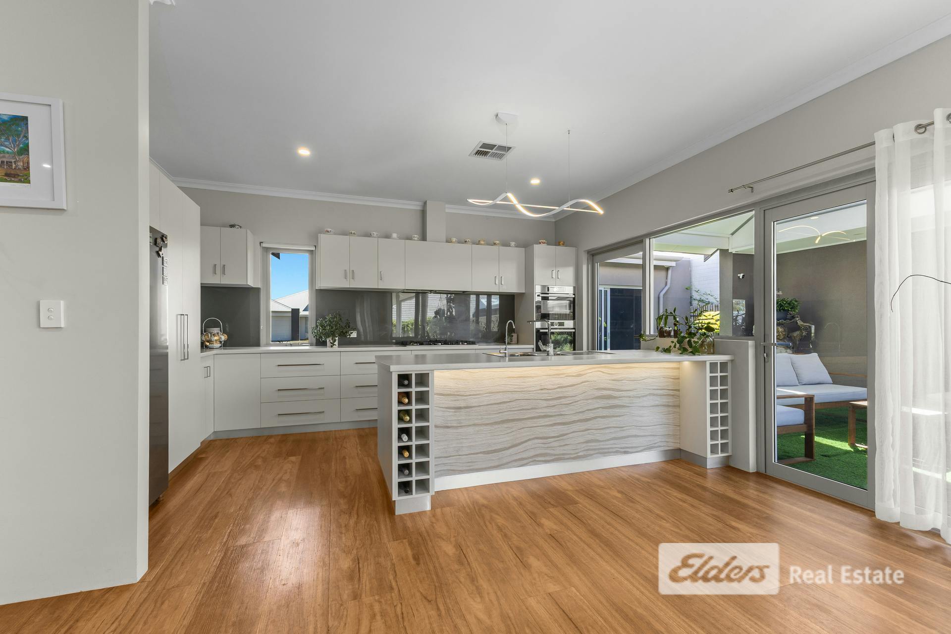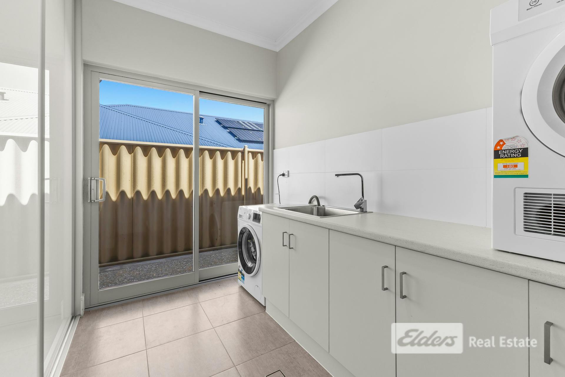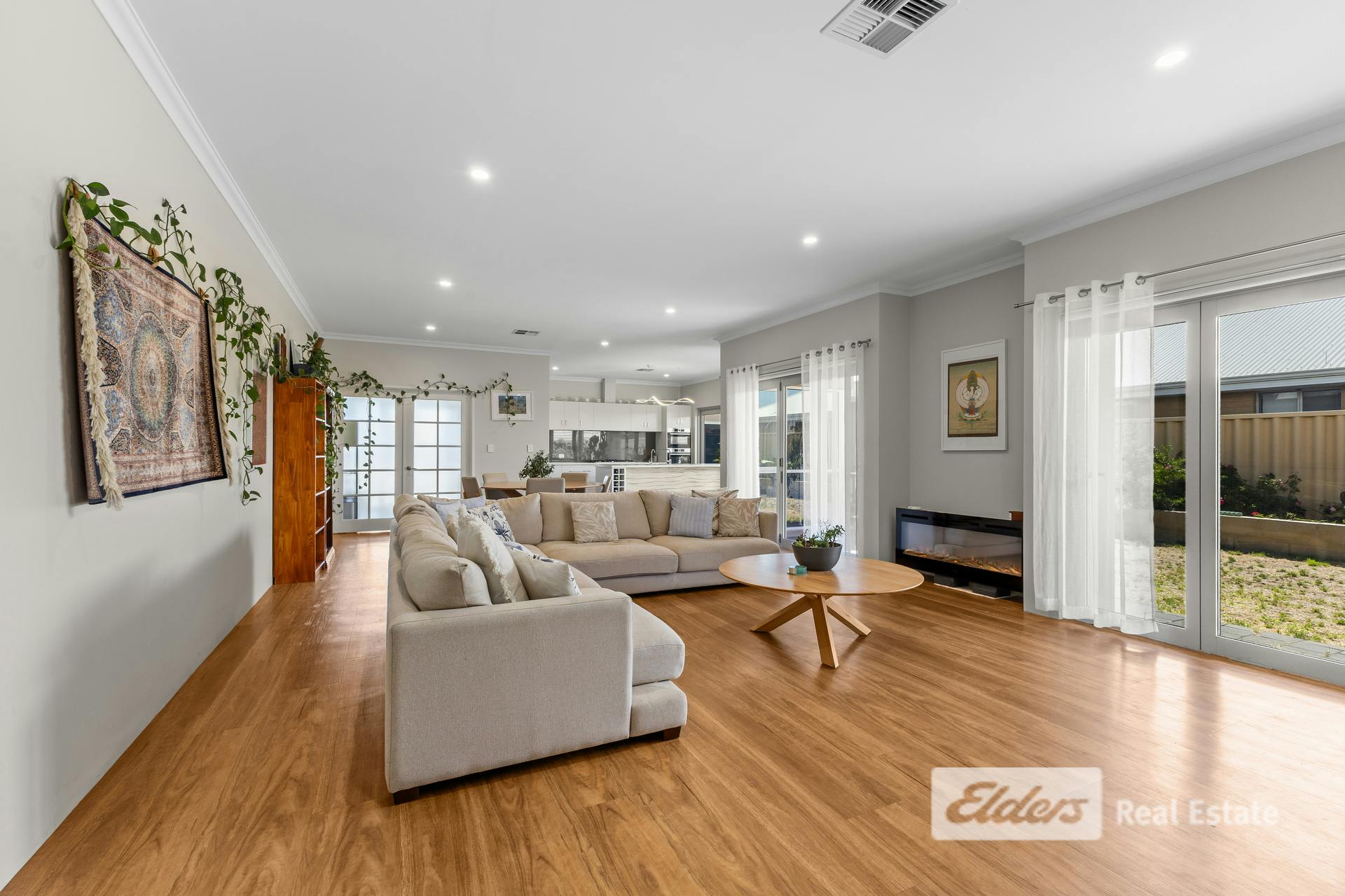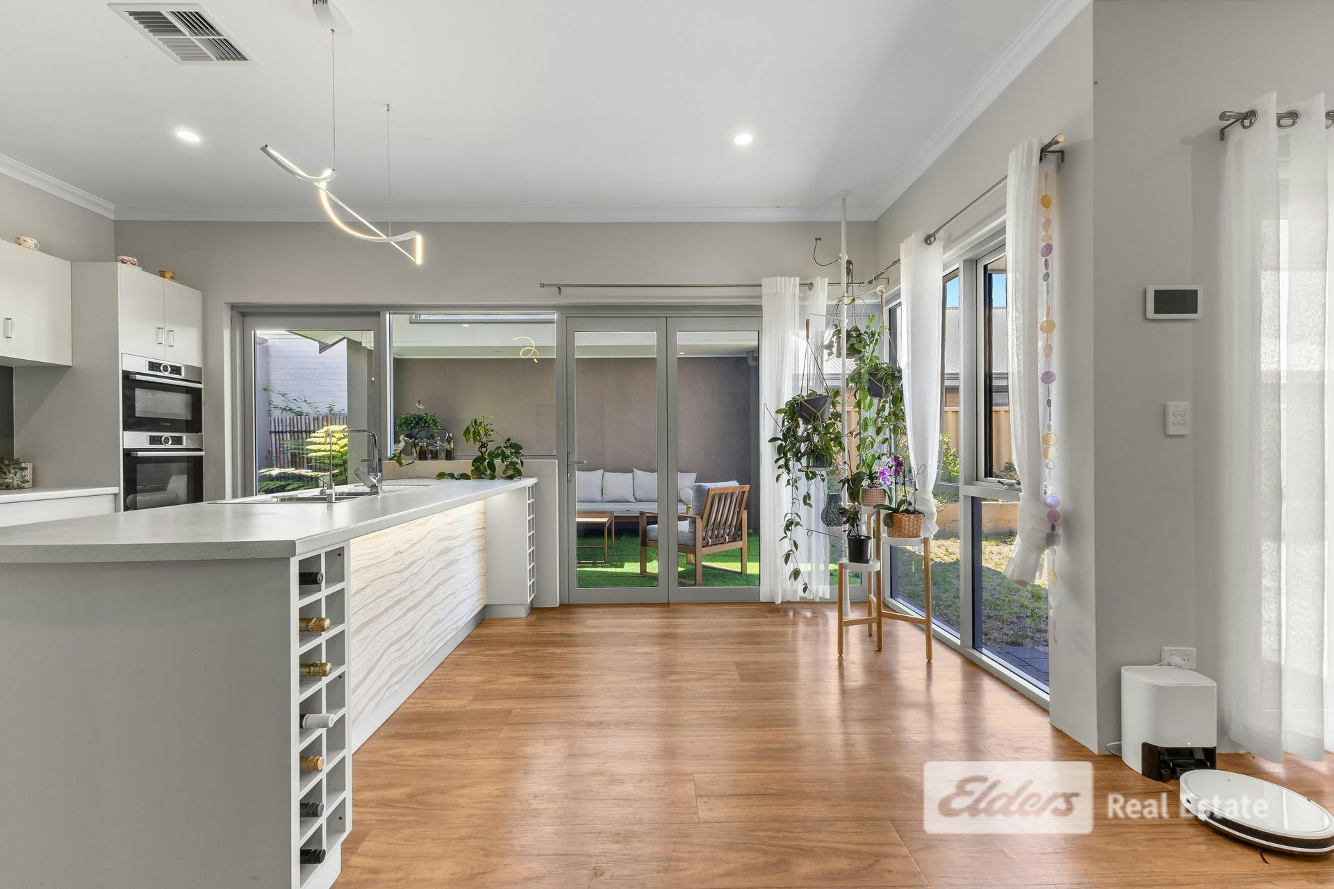 Set on a generous 561m² beachside block in sought-after Dalyellup, 27 Gutmann Parkway delivers a superb blend of bespoke design, seamless indoor–outdoor living and flexible spaces for families, entertainers or home-based professionals.A large, welcoming entry opens into a magnificent central living zone where the home truly shines. The custom kitchen overlooks the dining and lounge and has been thoughtfully designed with quality and functionality in mind, featuring ample drawers, a full pantry, double fridge recess, Bosch double ovens, double sink, dishwasher, wine racks with under-bench lighting and elegant finishes throughout.