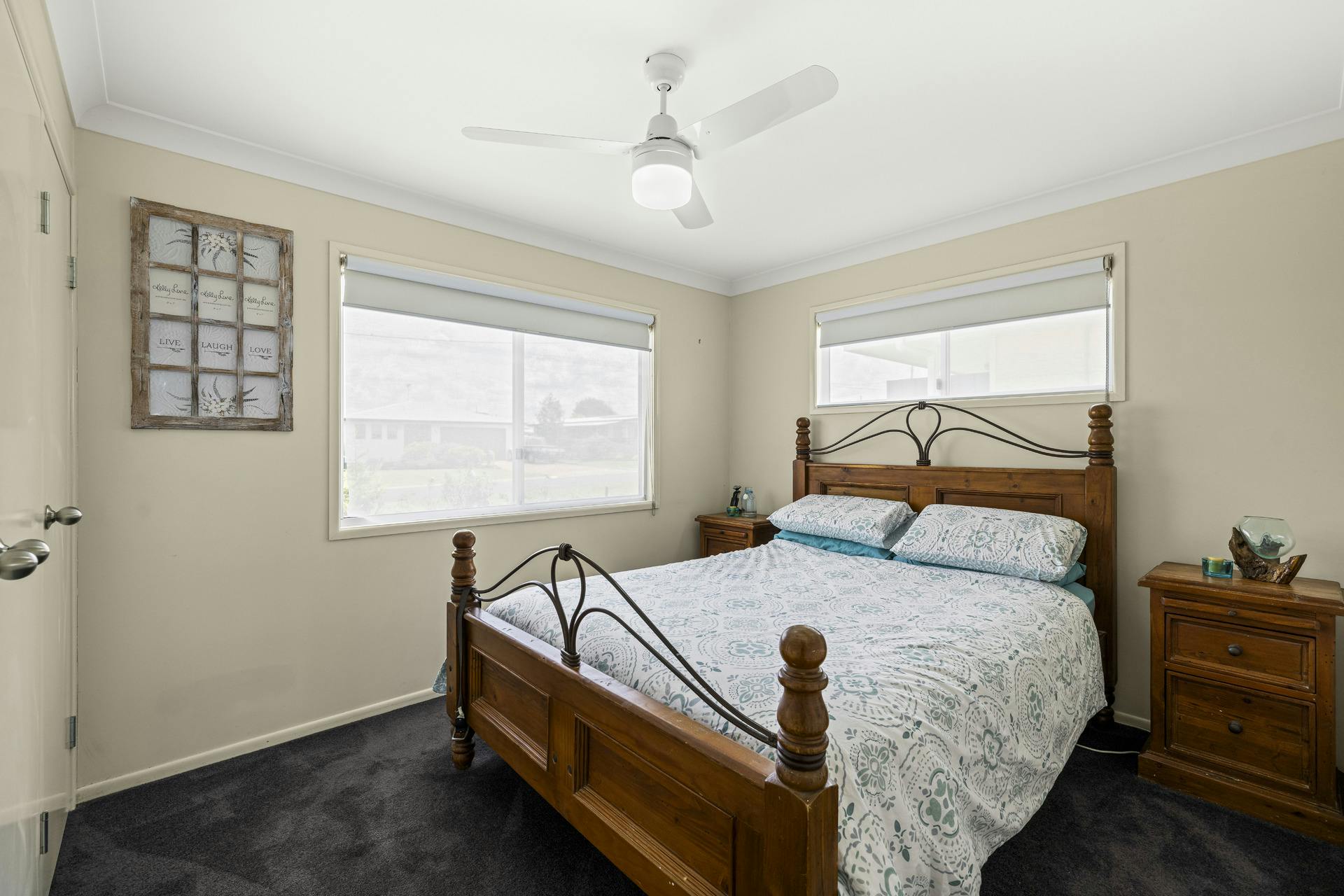 Inside, the home is well appointed, featuring three bedrooms with ceiling fans and a stylish bathroom with shower and separate toilet. The kitchen is quaint yet practical, complete with dishwasher, hot plates and oven. The lounge boasts large windows, a reverse-cycle air-conditioner, and a ceiling fan for year-round comfort.