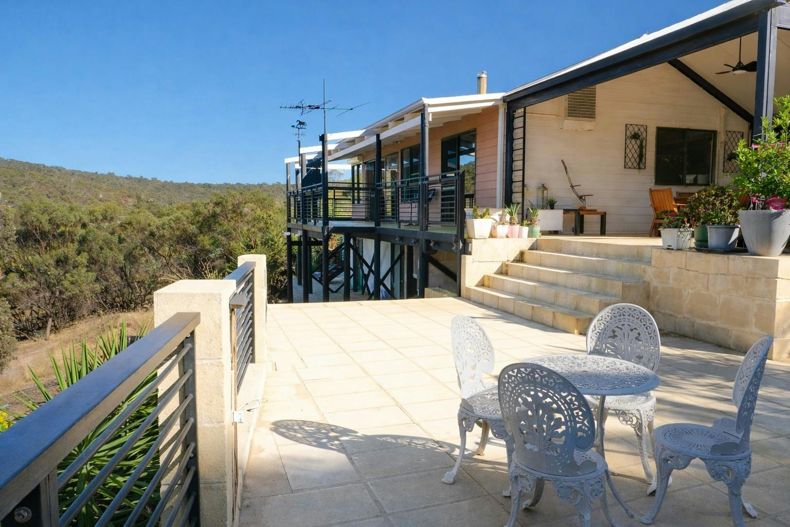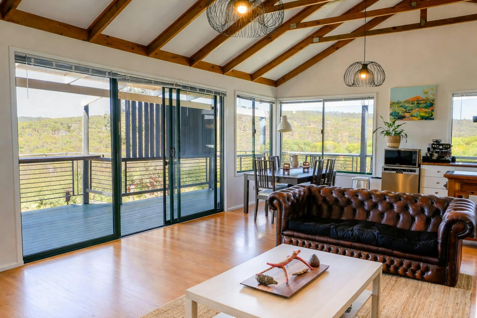 By day, the views stretch endlessly across treetops and rolling landscape. In the cool of the morning and evening, kangaroos move quietly through the lower section near the seasonal winter creek, adding a sense of calm and magic to everyday life.