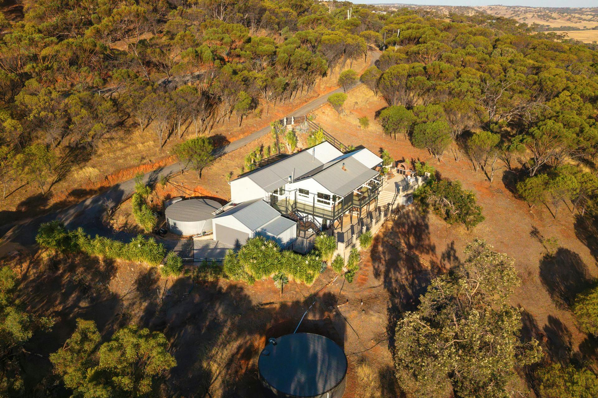 Three water tanks provide over 300,000 litres of storage, servicing both the home and a full sprinkler system for bushfire protection.