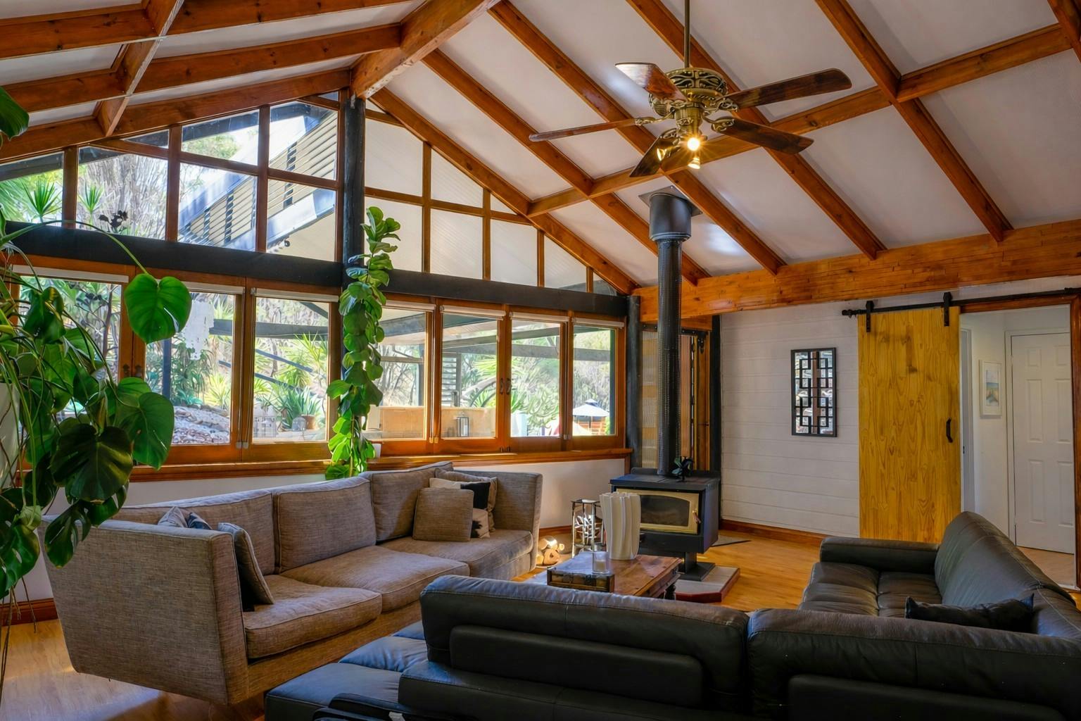Premium inclusions elevate the kitchen into true foodie territory, including a boiling, chilled and sparkling water system, electric oven with gas hob, marble butcher's block, a clever corner pantry with potential for hidden walk-in conversion, and a brand new European wood burner for winter ambience.