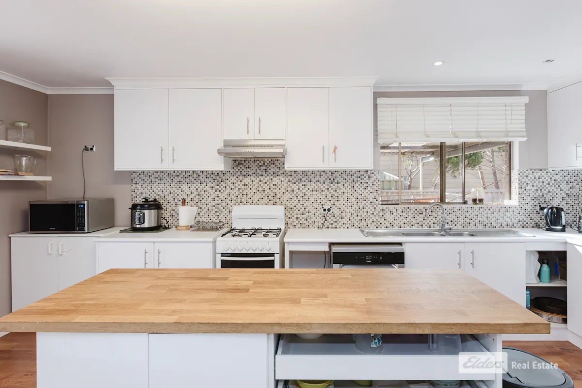 • Kitchen is a great size with dishwasher, big island, heaps of bench and storage space, French doors to patio