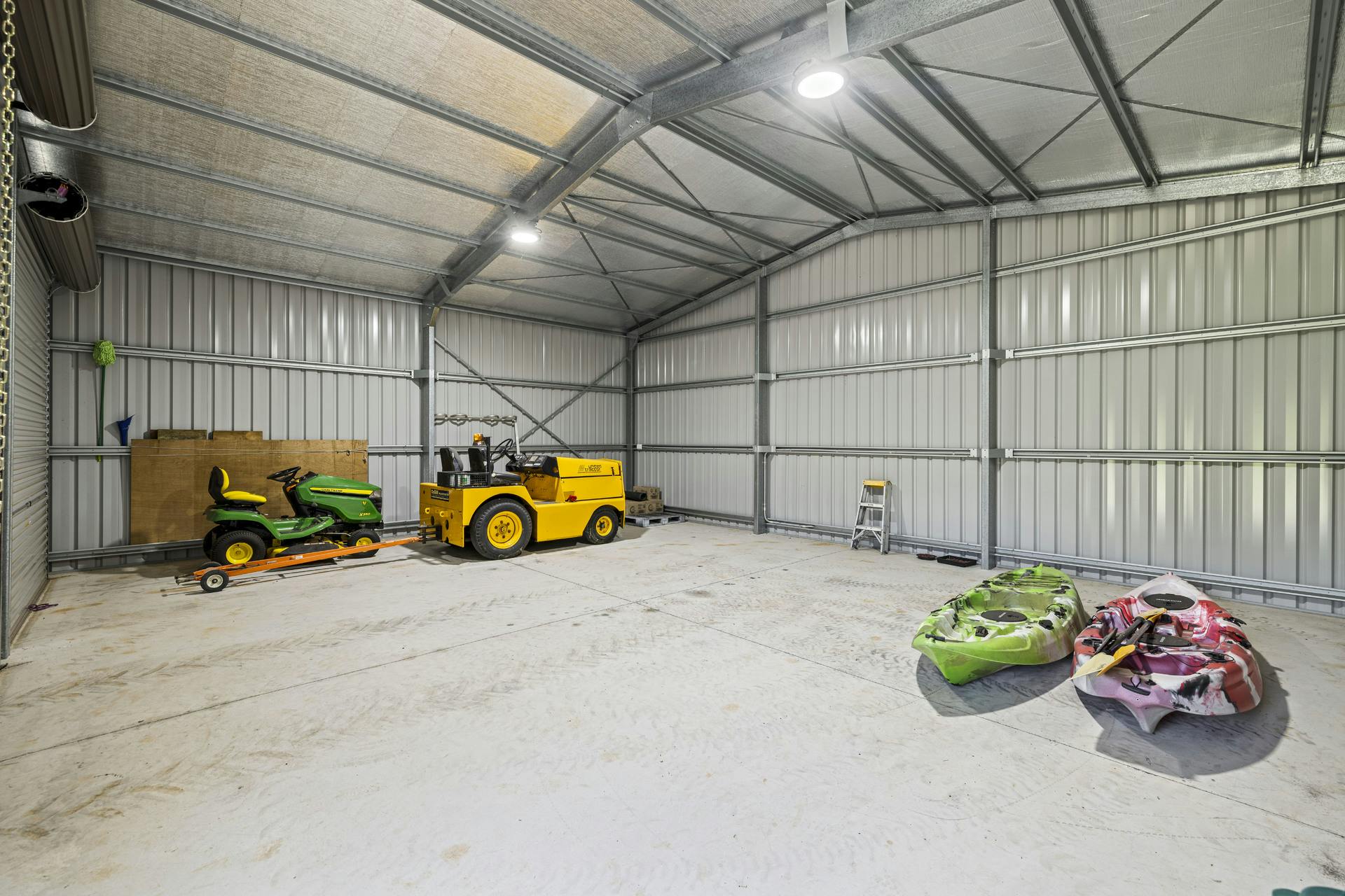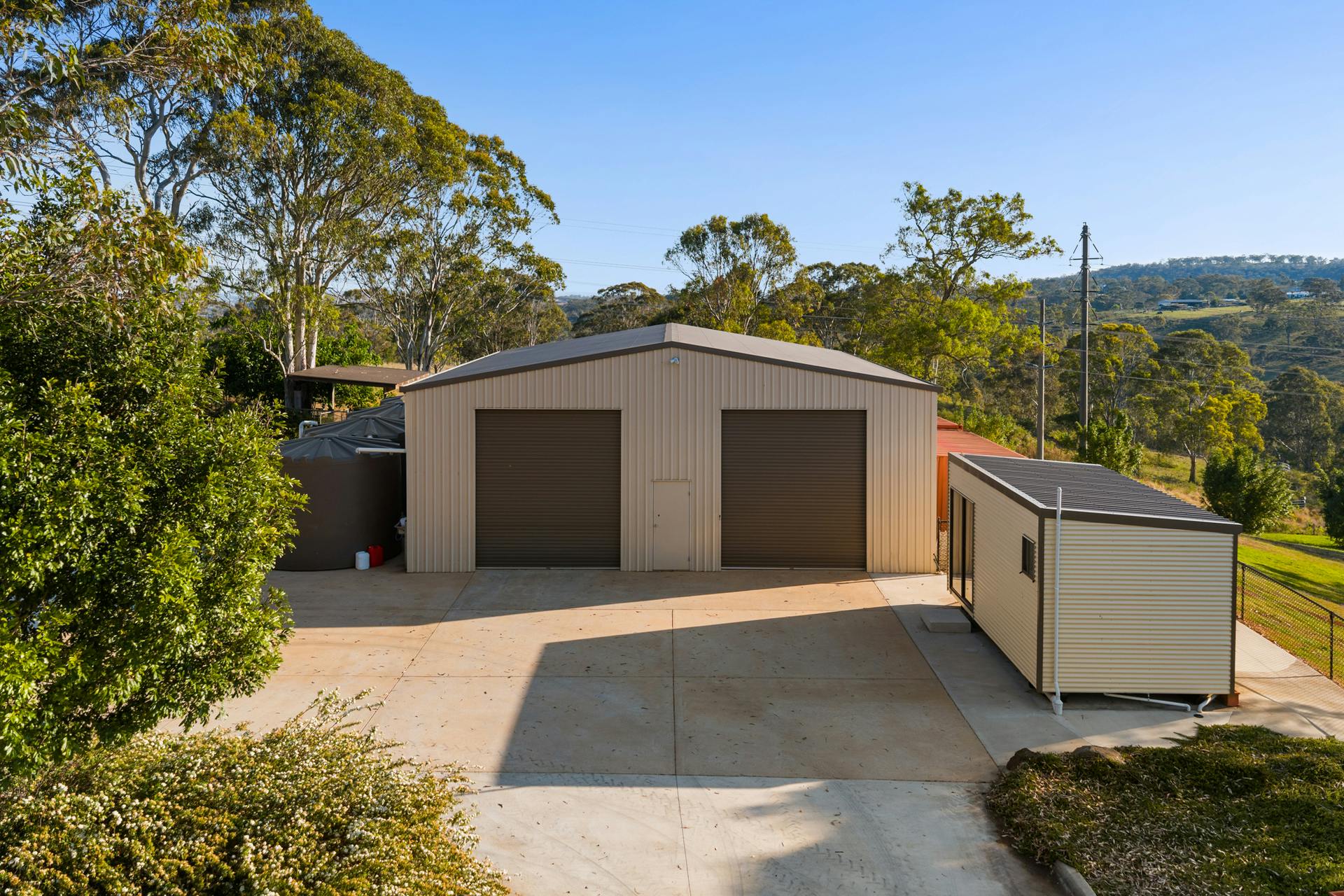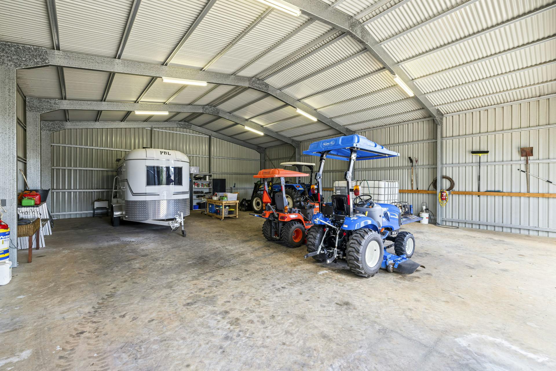 The powered 12m x 14m shed with high clearance access, plus an additional 8m x 10m high clearance powered shed, are a dream come true for the tradesman, car and vehicle collector, or for housing the caravan, motorhome, or truck. A tiny home or caretaker's amenity is fully self-contained with kitchenette, shower and toilet.