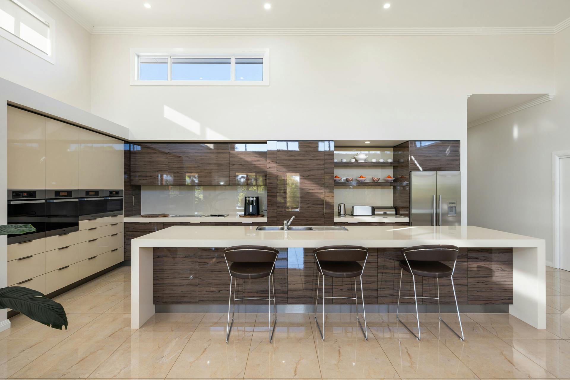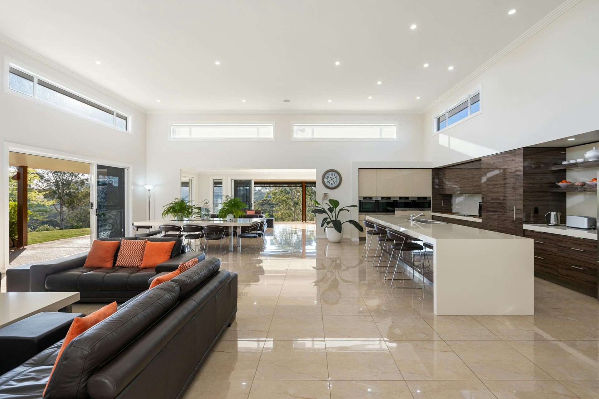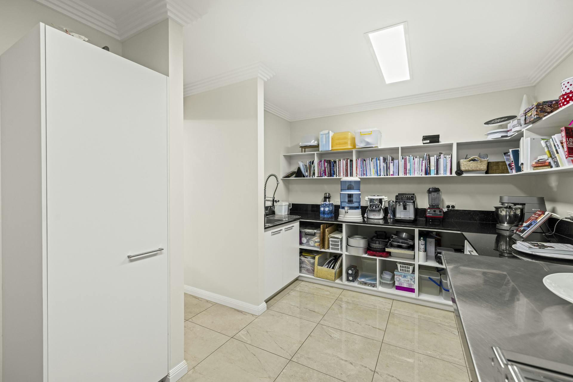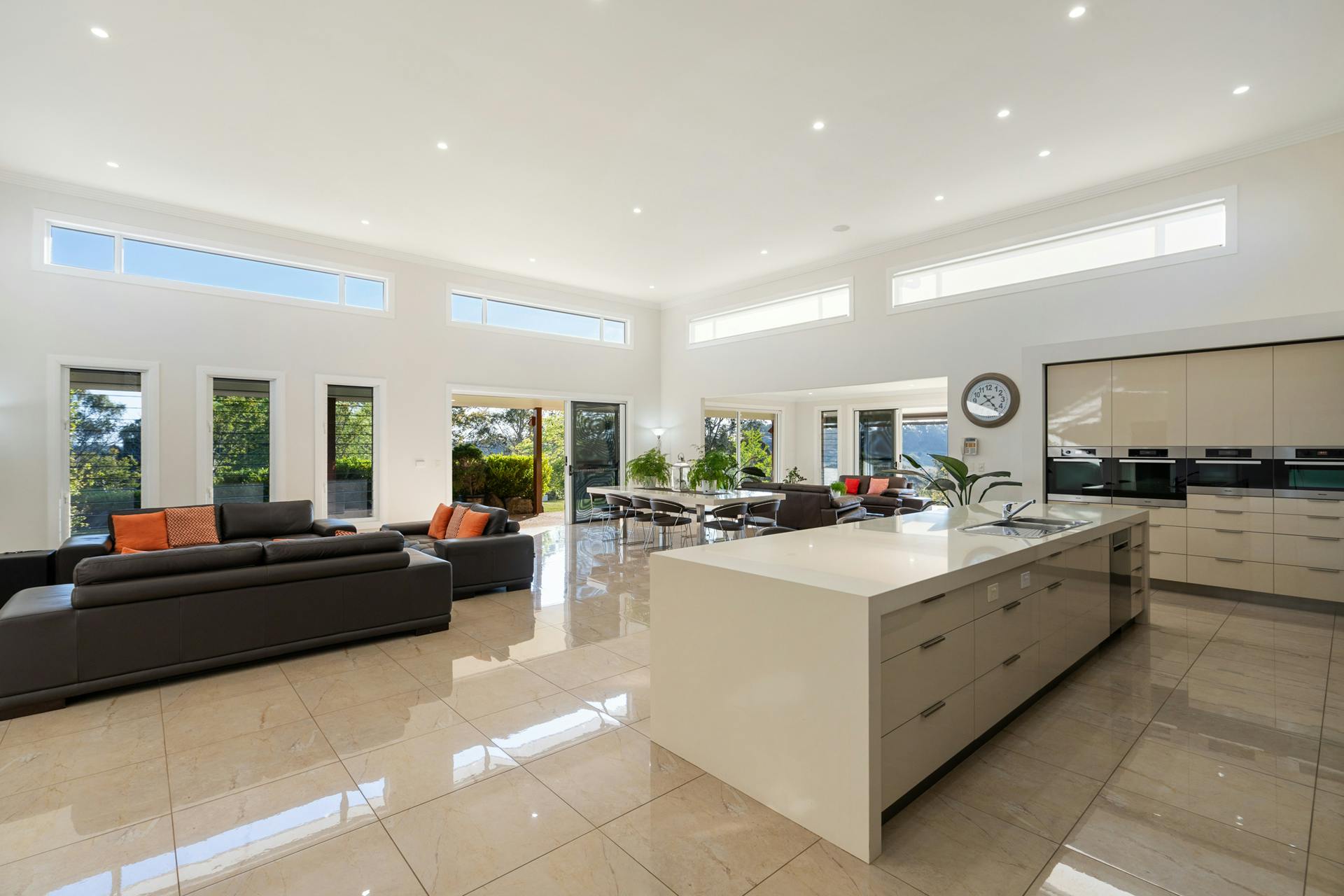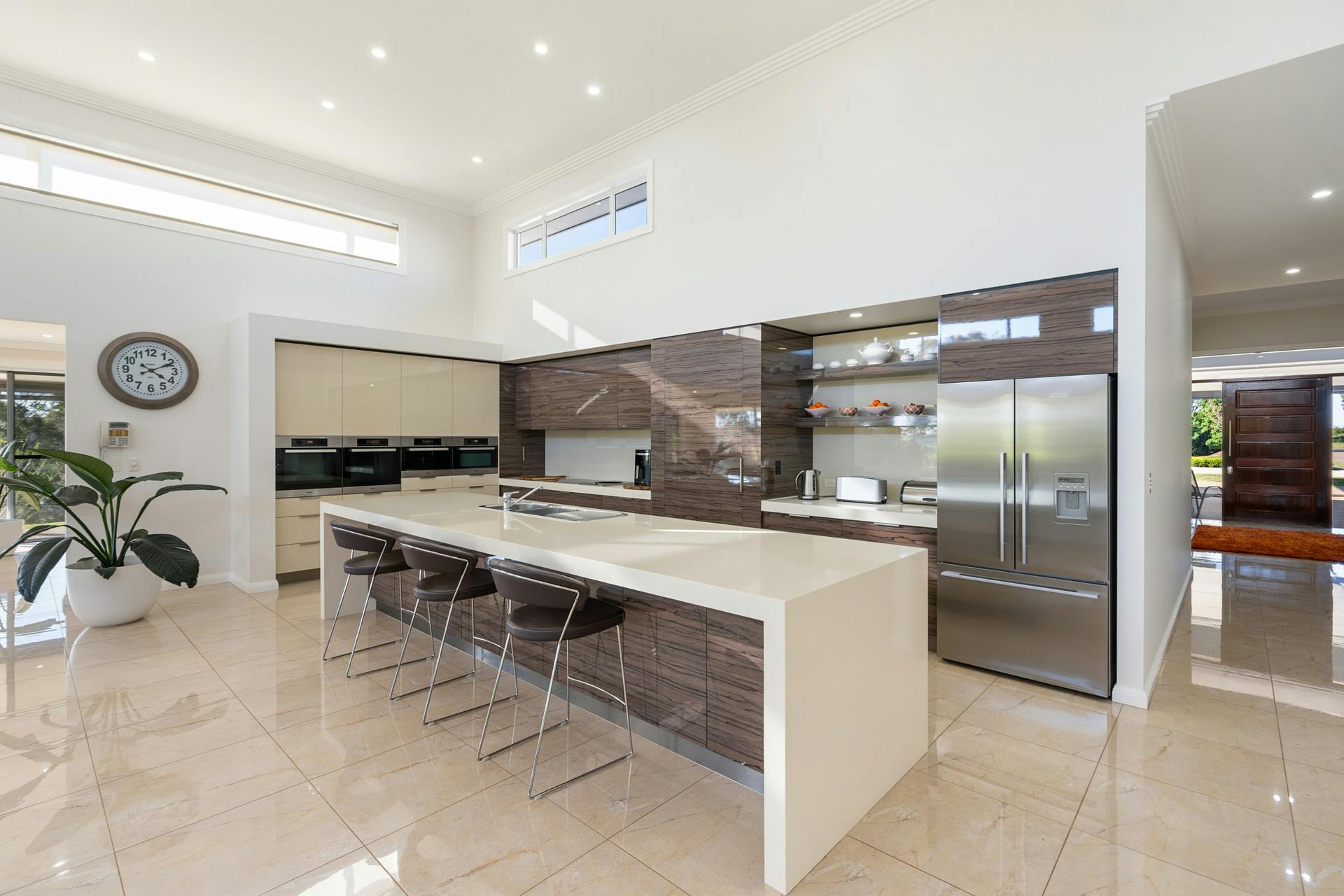 The Kitchen is a chef's delight. The huge galley design is spacious and functional with extensive bench and cabinetry space. Four Miele wall ovens are at your beck and call which include two cooking ovens, one streamer, and a microwave/oven combination. The convenience of the spectacular butler's pantry cleverly disguised behind matching cabinetry doors. It is itself, larger than most kitchens, together with the kitchen and the endless living areas make it possible to host and cater for the largest of special family events and social gatherings.
