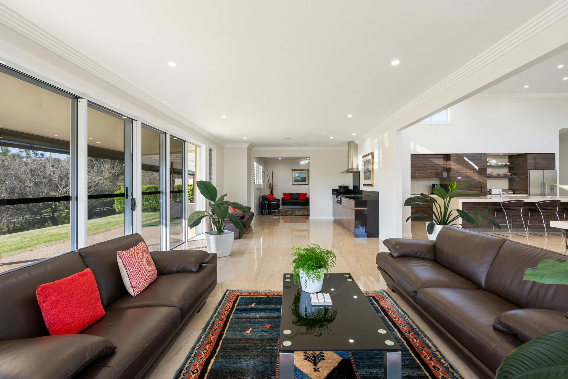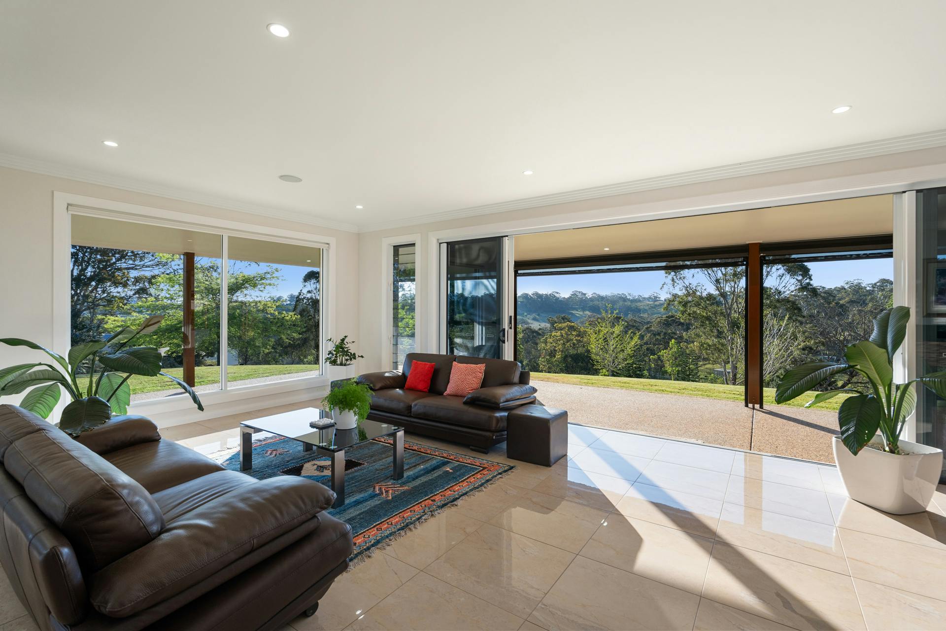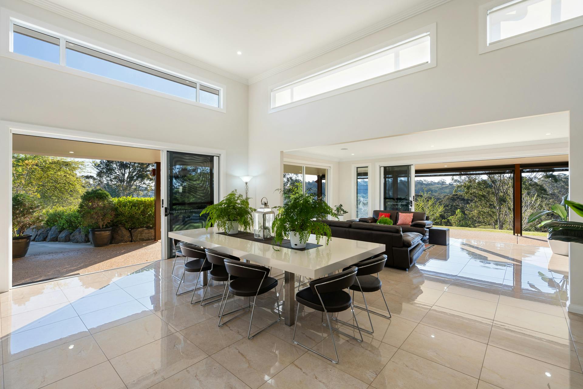 Features of the home include the breathtaking 5 metre high ceilings towering above the expansive central open plan kitchen dining and lounge area, ducted air conditioning throughout, a gas fire place, underfloor zoned heating in all the tiled floor areas, attached triple lock up garage and four car front portico, security system and the beautiful country side views from all of the generous living areas.