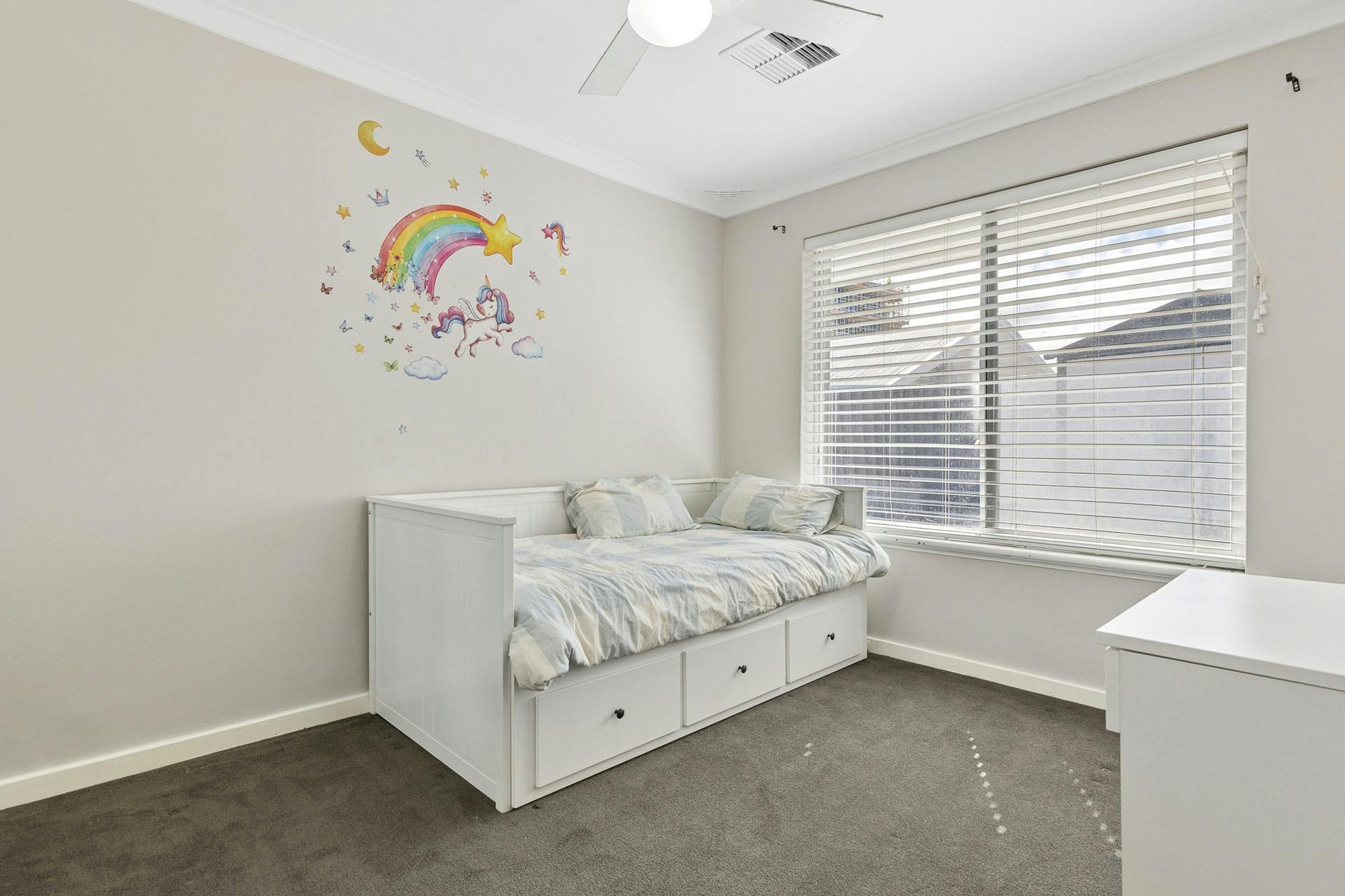 - Three minor bedrooms placed within their own section to the left of the home, with ceiling fans, soft carpet and built-in robes to all