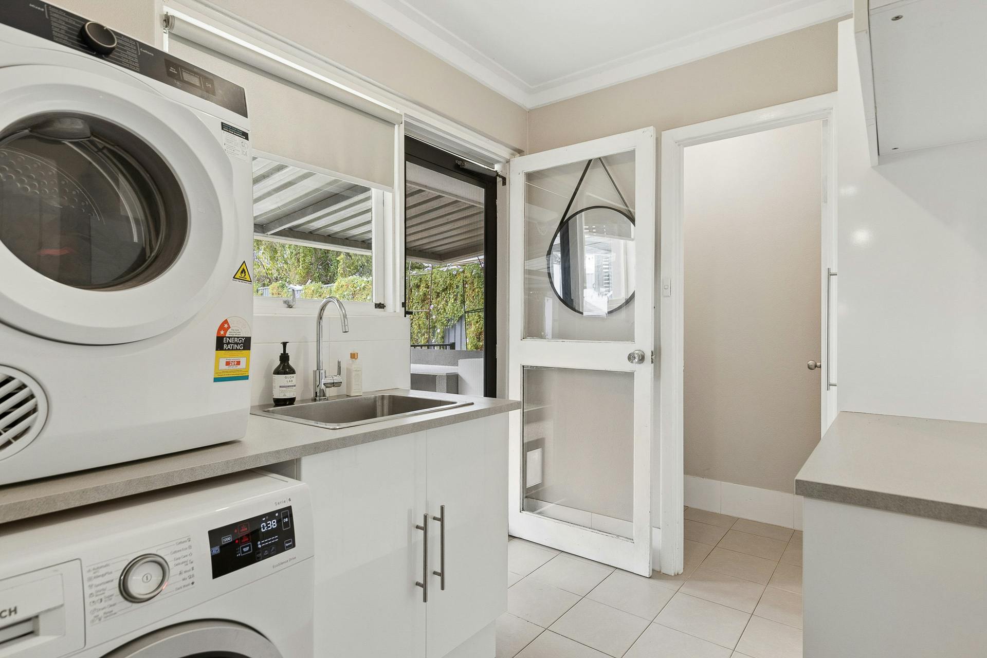 - Large laundry with both cabinetry and counterspace and direct exterior access