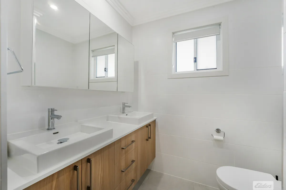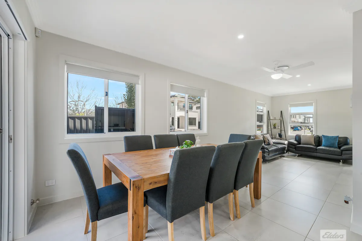 Positioned on a desirable corner block and just under a year young, this thoughtfully designed double-storey residence delivers quality, comfort and low-maintenance living in a sought-after location.Built by a highly regarded builder known for exceptional craftsmanship, the home showcases a refined finish throughout. The ground floor offers a welcoming foyer entry leading to an open plan living and dining space, complemented by full tiling underfoot. The kitchen is both functional and stylish, featuring a 900mm gas cooktop, stone benchtops with waterfall edge and ample storage. Quality bathrooms and ducted air conditioning complete the downstairs layout.