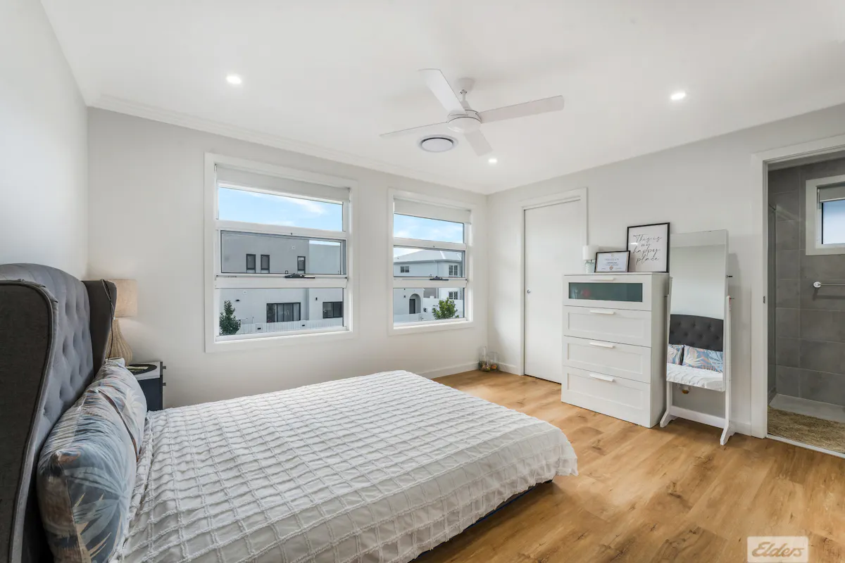 Upstairs, four bedrooms are fitted with ceiling fans, including a well-appointed master with ensuite and walk-in robe. Timber flooring throughout adds warmth and continuity to the upper level.