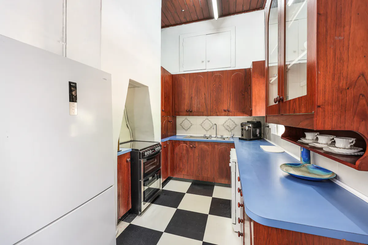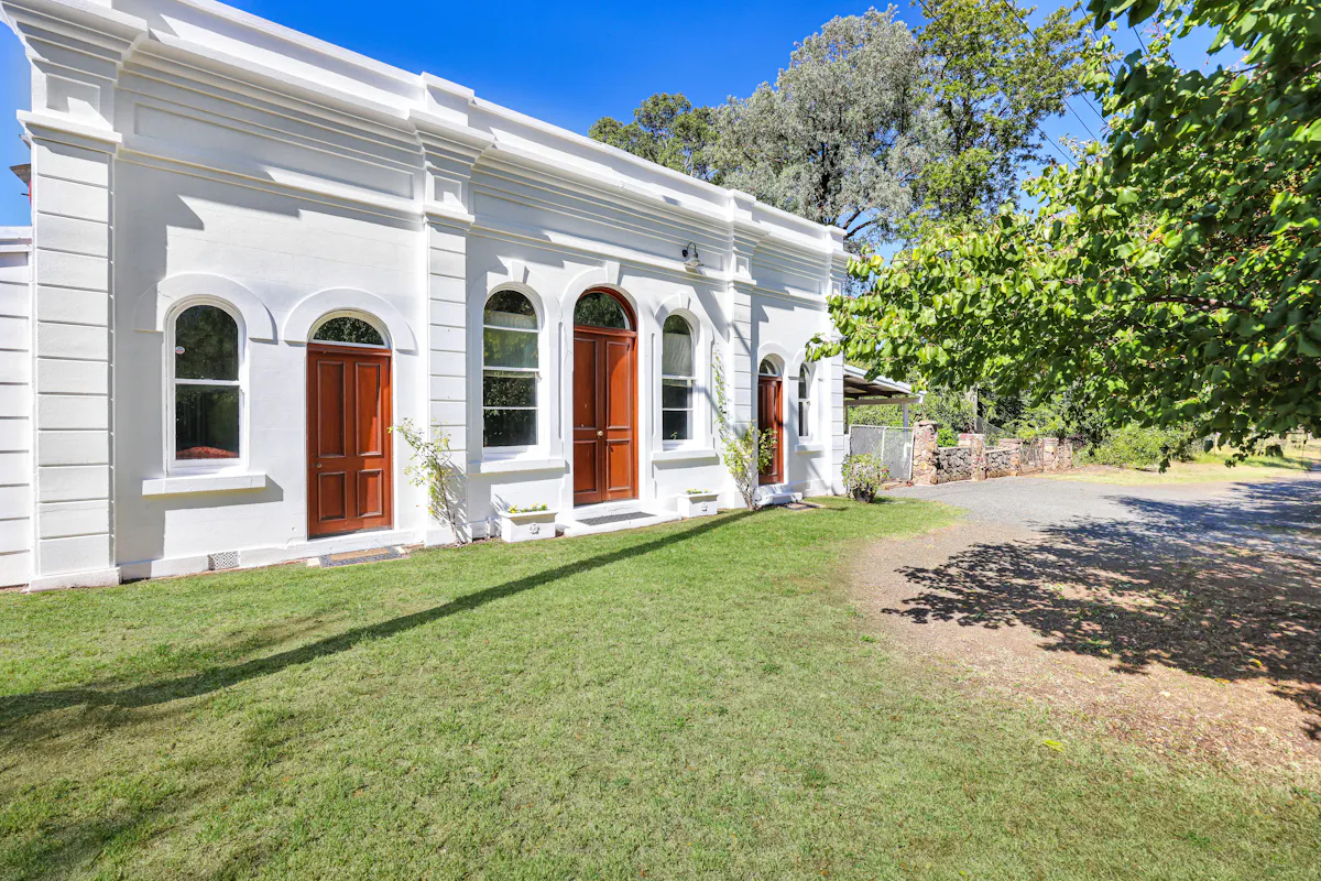 Accommodation includes two generous bedrooms, with the main enjoying its own ensuite, while an additional third room offers versatility as extra storage or sleeping space. The timber kitchen is full of warmth and character, complete with an electric oven and cooktop, while the classic bathroom features a clawfoot bath and shower combination, elegant finishes and a separate toilet.