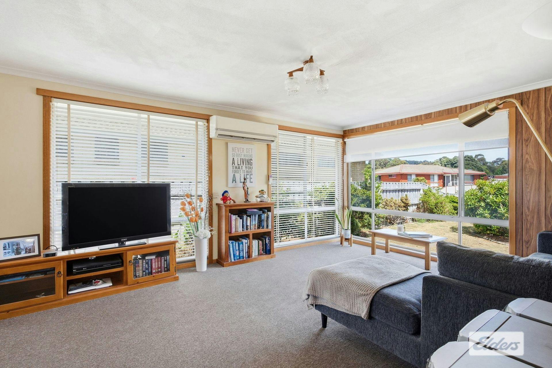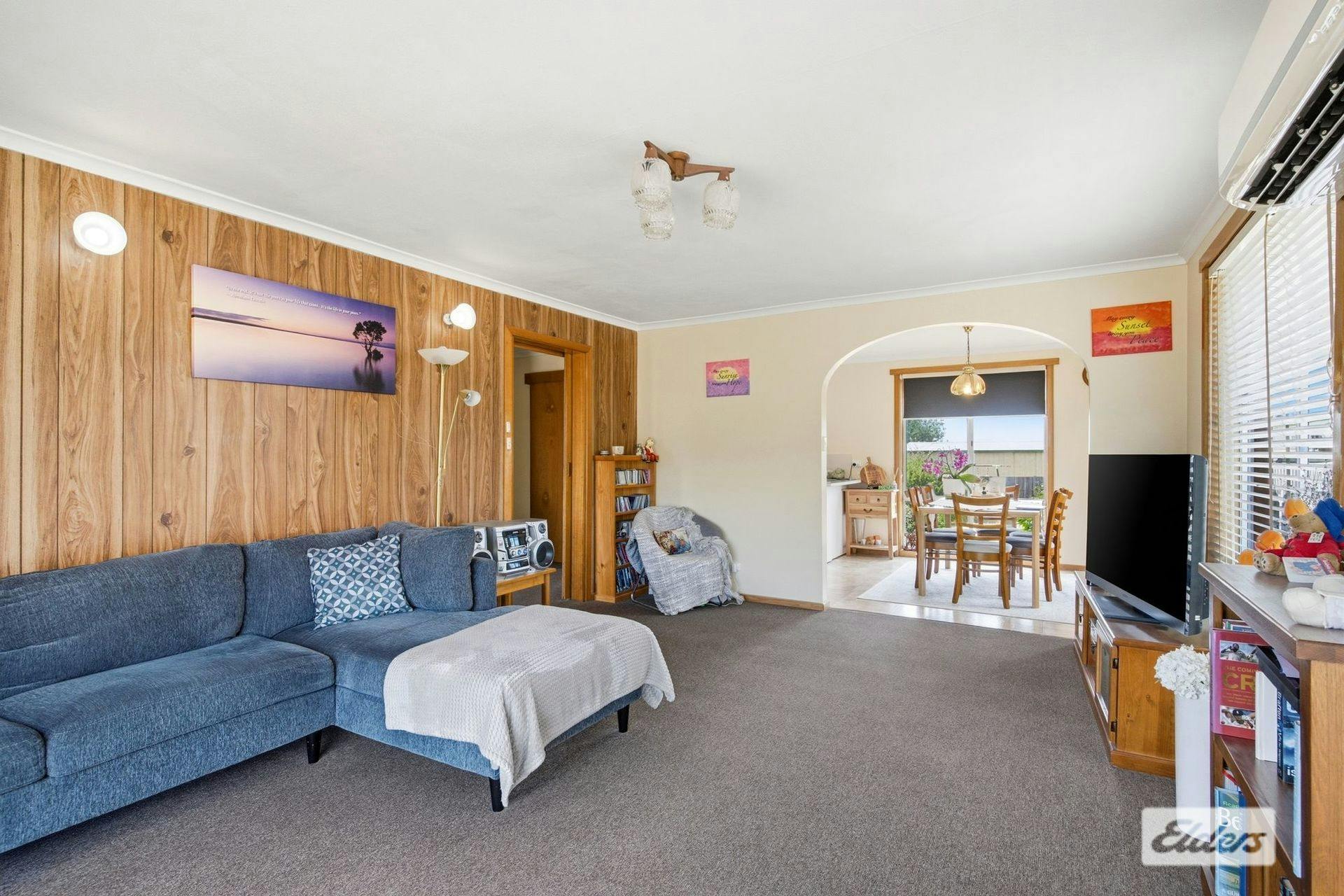 Spacious living room captures plenty of natural light providing warmth throughout the home and there is a Mitsubishi inverter for convenience.
