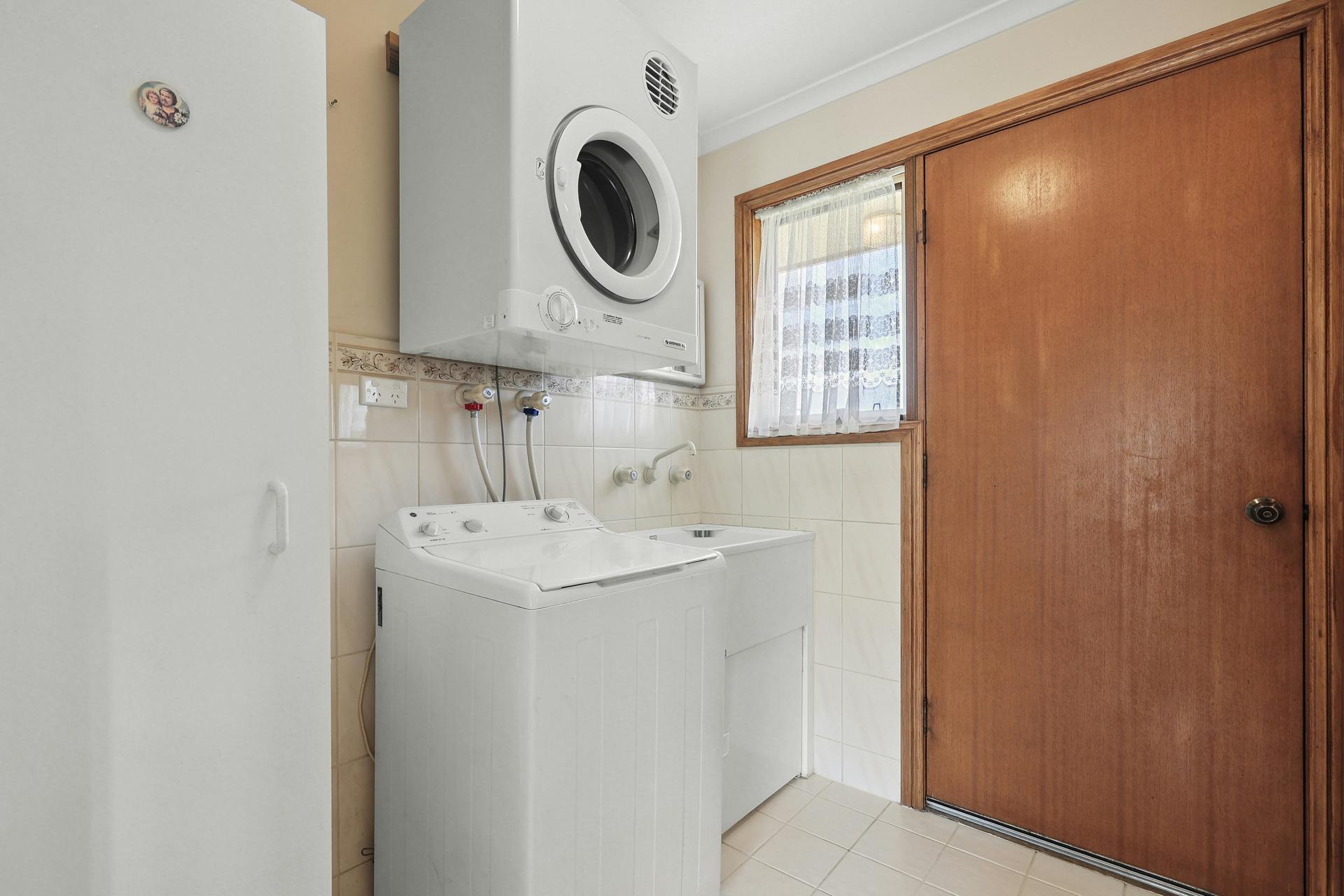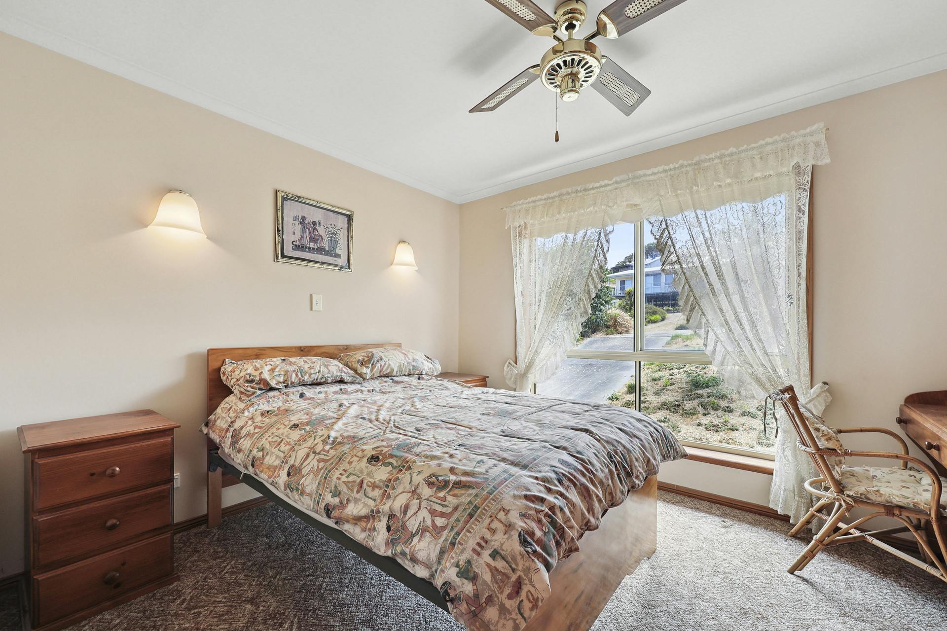 The main bedroom has lots of northern light is spacious and well-appointed with carpets, ceiling fan and a generous size built-in robe. Bedroom 2 comes with free-standing robes and is perfectly positioned away from the main living areas. The modern bathroom is conveniently located, has a large shower and a quality vanity finished in original tones and delightful fixtures. There is good-sized laundry, separate toilet, 250 litre electric hot water service and plenty of additional storage.