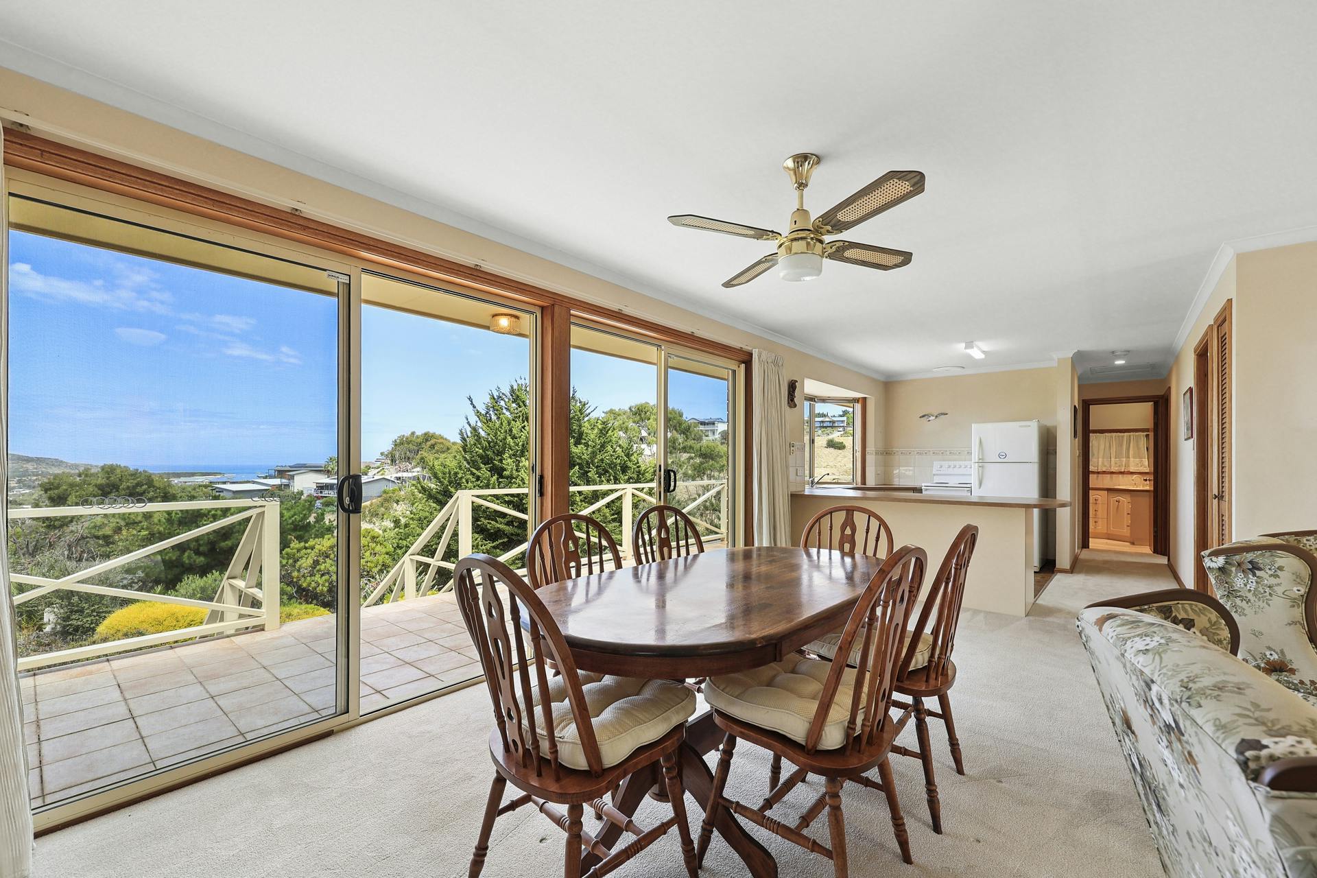 Overlooking magnificent Encounter Bay and just a short drive to one of the most beautiful stretches of coastline on the Southern Fleurieu Peninsula this property is bound to impress first home buyers, holidaymakers, retirees, or investors.The neat as a pin presentation of this circa 1994 brick veneer home will delight. Located high on a hill and built over a large allotment, this quality residence offers a relaxed and comfortable floor plan, amazing views, privacy, and plenty of natural light.