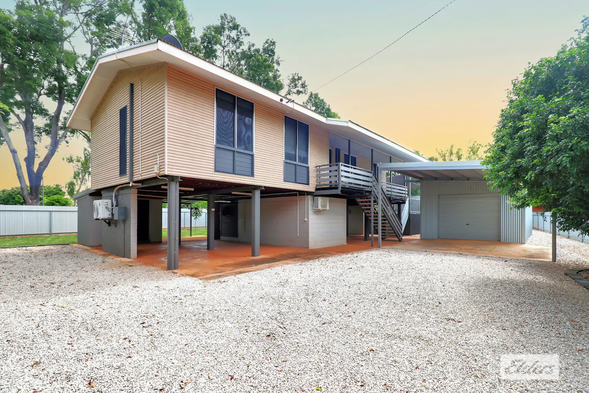 Positioned in one of Katherine's most sought-after suburbs and safely out of the flood zone, this elevated home offers space, privacy and the ultimate Territory lifestyle - all within walking distance to Eastside shops, schools and childcare.Upstairs features beautiful hardwood floors, a neutral colour scheme and split-system air-conditioning throughout for year-round comfort. Three generous bedrooms include built-in wardrobes, security screens and individual air-conditioning. The well positioned kitchen flows easily into the living areas making entertaining a breeze.