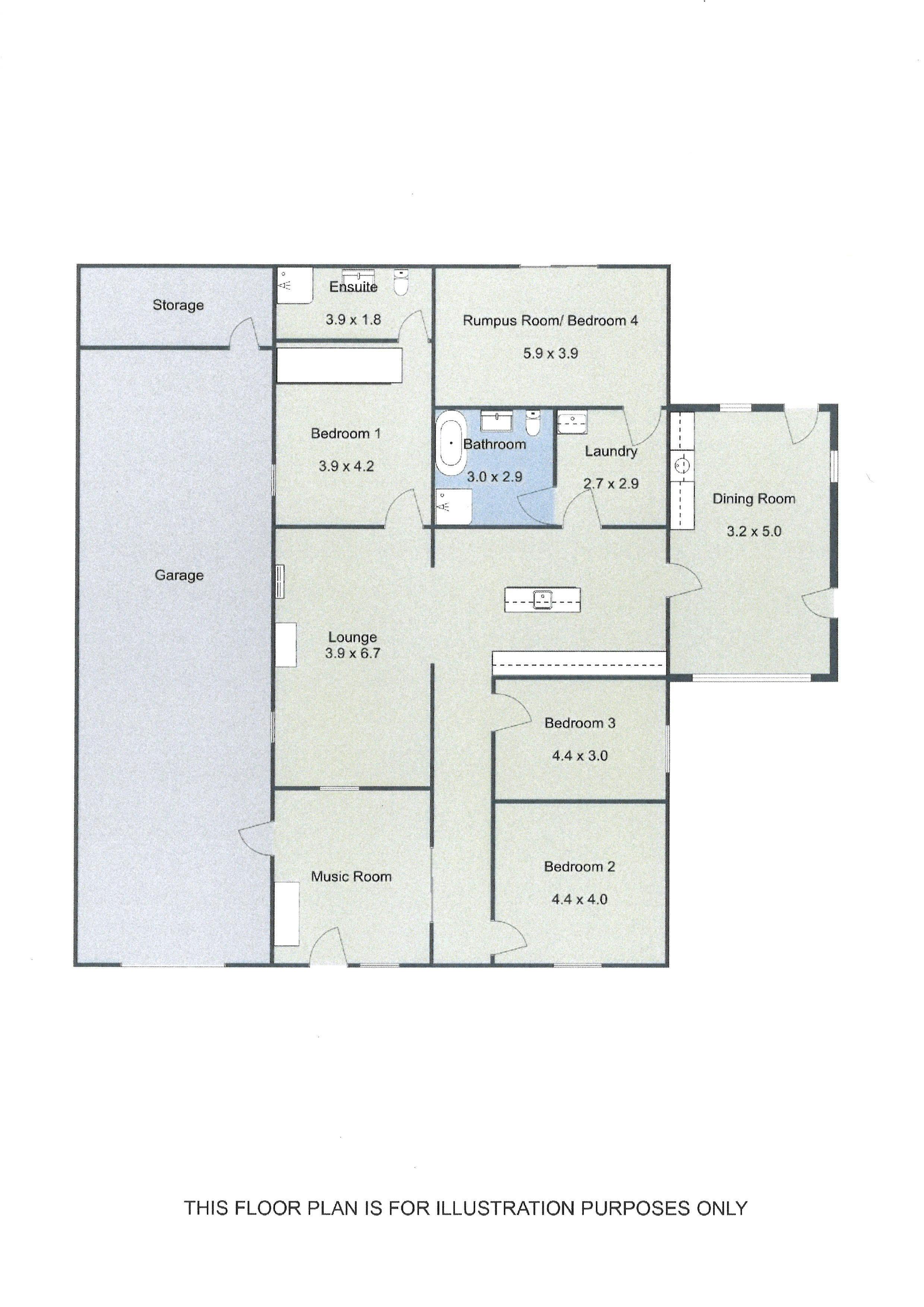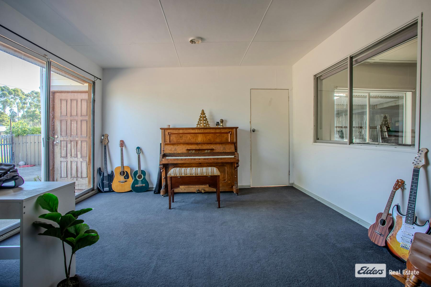 The very flexible layout offers spaces which at the moment are used for dining, music and a rumpus room, but all could be reimagined for other purposes. Central to the design is a walk-through kitchen with island bench and eletric appliances.